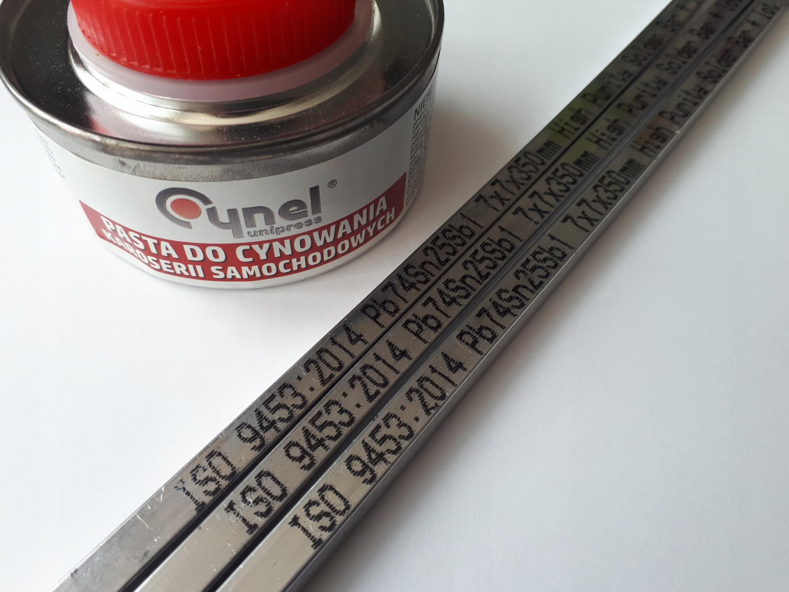 Tarniki PÓŁOKRĄGŁE SKOŚNE Cyna 4sz Pasta Wosk Szpachelki 3szt Hebel PALNIK W zestawie Cyna 25% niemieckiej produkcji - 4 laski to ok 1,12kg Pasta ze sproszkowaną cyną 25% - 200g Szpachelka mała, średnia iduża do wygodnego rozprowadzania cyny - 3szt. Wosk do impregnacji szpachelek, by długi czas nam służyły - 200g Hebel + 4 różne tarniki Palnik z regulacją - 1szt. Dysze - 3szt. Redukcja gwintu - 1szt. Klucze do regulacji - 2szt. Okuty wąż 1,5m - 1szt. Zobacz palnik gazowy na filmie Https://youtu.be/Rd8bEQ0CfOw Skopiuj link i wklej do okna przeglądarki Łatwy w obsłudze palnik gazowy do lutowania na gaz propan-butan. Palnik znajduje zastosowanie do prac takich jak: cynowanie karoserii lutowanie zgrzewanie obkurczanie klejenie na ciepło Narzędzie idealnie sprawdzi się w pracach: warsztatowych ślusarskich mechanicznych spawalniczych dekarskich Palnik posiada antypoślizgową rękojeść wraz z pokrętłem regulacji przepływu gazu. W dalszej części palnika znajdziemy stalową dyszę i zawór przepływowy. W zestawie znajdują się 3 końcówki o wymiarach: 13mm 15mm 17mm Redukcja z małej butli na dużą. Przejściówka posiada dwie uszczelki. Przejściówka z gwintu 3/8" na 1/2" Dane techniczne palnika gazowego Temperatura płomienia: do 1850°C Maksymalna moc: do 2kW Zużycie gazu: 140 g/h Dysze w zestawie: 13mm, 15mm i 17mm Ciśnienie znamionowe gazu zasilającego: 0,5 MPa Przyłącze palnika: GZ 3/8" Przyłącze węża: GW 3/8" oraz GW 1/2" Materiał wykonania: stal ocynkowana, tworzywo sztuczne Długość palnika: około 40cm Długość węża: 1,5m Zobacz zbliżony zestaw na filmie Https://youtu.be/rsZ-EivSkGA Skopiuj link i wklej do okna przeglądarki Filmik wszystkich tarników + hebel poniżej Hebel do cyny z blatem dwustronnym. Hebel umożliwia nam w nie wielkim stopniu wyginanie do środka lub na zewnątrz tarnika co ułatwia nam pracę 4 laski ważą ok 1,12kg (1120g) Długość: 410mm Szerokość: 12mm Wysokość: 7mm Cyna LC25 4 laski Na życzenie instrukcja cynowania Jest to specjalna niemiecka pasta przeznaczona do cynowania karoserii samochodowych. Zawiera sproszkowaną cynę dzięki czemu po przygotowaniu karoserii możemy cynować pionowe powierzchnie. W opakowaniu 200g pasty Mała szpachelka Długość: 20cm Szerokość robocza: 3cm Długość robocza: 8,5cm Grubość rączki: 3cm Wysokość: 2,8cm Szpachelka Długość: 22cm Szerokość robocza: 3,5cm Długość robocza: 10,5cm Grubość rączki: 3cm Wysokość: 3,5cm Duża szpachelka Długość: 20,7cm Szerokość robocza: 5,5cm Długość robocza: 8,5cm Grubość rączki: 3cm Wysokość: 3,5cm Wosk 200g do impregnacji szpachelek do cynowania Dzięki niemu zachowujemy stan dobry szpachelek na długi czas. Cyna również nie lepi się wtedy do szpachelek. Dane techniczne tarników ⭐ Długość: 350mm ⭐ Grubość: ~4,5mm ⭐ Szerokość otworu na hebel: 7mm ⭐ Długość między otworami: 326mm Tarnik (4szt.) Tarniki półokrągłe do obróbki krzywizn ⭐ Nr1: Półokrągły zgrubny ➡️ Waga: 308g ⭐ Nr2: Półokrągły dokładny ➡️ Waga: 342g Tarniki skośne do powierzchni płaskich ⭐ Nr3: Skośny dokładny ➡️ Waga: 296g ⭐ Nr4: Skośny zgrubny ➡️ Waga: 290g (Zgrubny lub dokładny tj. 9 lub 12 ostrzy na cal (2,54cm)) Zobacz wszystkie tarniki + hebel na filmie Https://youtu.be/OEdt2MOZacE Skopiuj link i wklej do okna przeglądarki W zestawie Palnik z regulacją - 1szt. Dysze- 3szt. Redukcja gwintu - 1szt. Klucze do regulacji- 2szt. Okuty wąż 1,5m - 1szt. Cyna 25% niemieckiej produkcji - 4 laski to ok 1,12kg Pasta ze sproszkowaną cyną 25% - 200g Szpachelka mała, średnia iduża do wygodnego rozprowadzania cyny - 3szt. Wosk do impregnacji szpachelek, by długi czas nam służyły - 200g Hebel + 4 różne tarniki instrukcja wysyłana na e-mail