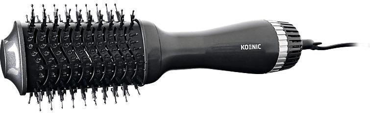 Szczotka do stylizacji na gorące powietrze Koenic KHA 10224 Xxl, Koenic KHA 10224 XXL to szczotka na gorące powietrze, która suszy i stylizuje włosy jednocześnie. Dzięki ceramicznej powłoce i technologii jonowej zapewnia zdrowy blask, wygładzenie i ochronę przed puszeniem – idealna dla osób, które chcą osiągnąć efekt „jak z salonu” każdego dnia, bez wychodzenia z domu. Korzyści: -Moc 1000 W – szybkie suszenie i efektywna stylizacja bez przegrzewania włosów. -Ceramiczna powłoka – równomierna dystrybucja ciepła dla ochrony i naturalnego połysku. -Technologia jonowa – wygładza włosy, redukuje puszenie i zapobiega elektryzowaniu. -2 poziomy temperatury + funkcja zimnego powietrza – dostosuj ustawienia do potrzeb swoich włosów. -Obrotowy przewód 360° o długości 1,8 m – pełna swoboda ruchów podczas stylizacji. -Lekka obudowa z tworzywa sztucznego – komfort użytkowania nawet przy dłuższym suszeniu. Stylizacja i suszenie w jednym – Koenic KHA 10224 XXL w codziennym użytkowaniu Szczotka Koenic KHA 10224 XXL łączy funkcję suszarki i stylizatora, co pozwala zaoszczędzić czas i uzyskać profesjonalny efekt bez wizyty u fryzjera. Duża moc 1000 W oraz ceramiczna powłoka pozwalają szybko wysuszyć i jednocześnie wymodelować fryzurę – od prostych pasm po lekkie fale. Technologia jonowa i powłoka ceramiczna – dla gładkich i zdrowo wyglądających włosów Urządzenie wykorzystuje technologię jonową, która neutralizuje elektryczność statyczną, co znacząco ogranicza puszenie się włosów. Ceramiczna powłoka chroni włosy przed szkodliwym działaniem wysokiej temperatury, zapewniając lśniące i gładkie wykończenie. Idealne rozwiązanie dla osób z suchymi lub zniszczonymi końcówkami. Proste ustawienia, które robią różnicę Szczotka Koenic oferuje dwa poziomy temperatury i nawiewu, co umożliwia dopasowanie działania do rodzaju i kondycji włosów. Funkcja zimnego powietrza pozwala na utrwalenie fryzury po zakończeniu stylizacji – bez dodatkowego obciążenia ciepłem.