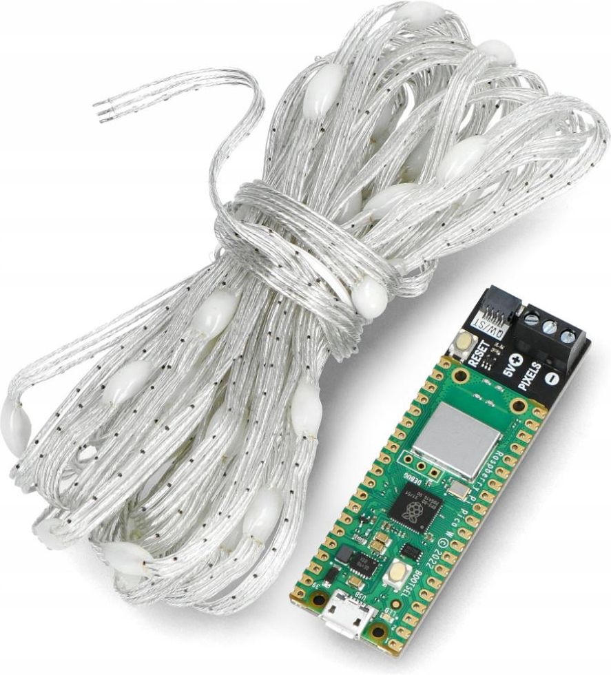 Wireless Plasma Kit - zestaw ze sterownikiem i taśmą LED WS2812/Neopixel Opis Zestaw zawierający moduł sterownika LED z płytką Raspberry Pi Pico W oraz pasek LED WS2812/Neopixel o długości 5 m z 50 diodami RGB. Został zaprojektowany do łatwego i szybkiego tworzenia animacji za pomocą popularnych …