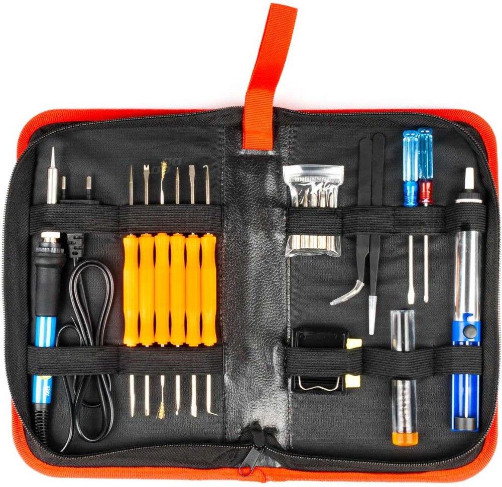 LUTOWNICA KOLBOWA PRECYZYJNA Z REGULACJĄ ZESTAW Zestaw do lutowania elektrycznego to praktyczne narzędzie, które spełni Twoje oczekiwania i zawsze będzie pod ręką, gdy będziesz go potrzebował. Jest to narzędzie, które ułatwi Twoją pracę, umożliwiając lutowanie różnego rodzaju materiałów, takich jak stal, cynk czy miedź. Doskonale sprawdzi się zarówno dla profesjonalistów, jak i pasjonatów, którzy zajmują się lutowaniem w domowym zaciszu. Jego regulowana temperatura (200-450°C) pozwala dostosować go do różnych zastosowań, zwłaszcza w przypadku łączenia podzespołów o niedużych rozmiarach. W zestawie znajdziesz wiele przydatnych części, takich jak stojak pod lutownicę, wymienne grotów lutownicy, drut lutowniczy, śrubokręt i narzędzia spawalnicze. Odsysacz lutowniczy z prętem ze stali nierdzewnej i antypoślizgową teksturą pozwala na pracę z łączeniem drobnych elementów metalowych, a pęsety ułatwiają pracę w trudno dostępnych miejscach. Całość zapakowano w kompaktowe i poręczne urządzenie, które gwarantuje wygodne i komfortowe użytkowanie. Zestaw do lutowania elektrycznego to nieoceniona pomoc w Twojej pracy, dając Ci możliwość wykonywania precyzyjnych łączeń różnych materiałów w profesjonalny sposób. Specyfikacja techniczna Element grzejny: Ceramiczny rdzeń grzejny Moc: 60W Zakres regulacji napięcia: 110/220V Zakres temperatur: 200-450℃ Wymiary: 26,5x15x3cm Zestaw składa się z 20 elementów, które są umieszczone w wygodnym pokrowcu, dzięki czemu możesz go łatwo przenosić i zachować porządek podczas pracy. Całość zapakowano w kompaktowe i poręczne urządzenie, które gwarantuje wygodne i komfortowe użytkowanie. Zestaw do lutowania elektrycznego to nieoceniona pomoc w Twojej pracy, dając Ci możliwość wykonywania precyzyjnych łączeń różnych materiałów w profesjonalny sposób. Zestaw zawiera lutownica z regulowaną temperaturą 60W 220V podstawka do lutownicy 5 szt. grotów lutowniczych 2 pęsety odsysacz cyna 2 śrubokręty precyzyjne 6 dwustronnych narzędzi precyzyjnych do elektroniki organizer w kształcie piórnika