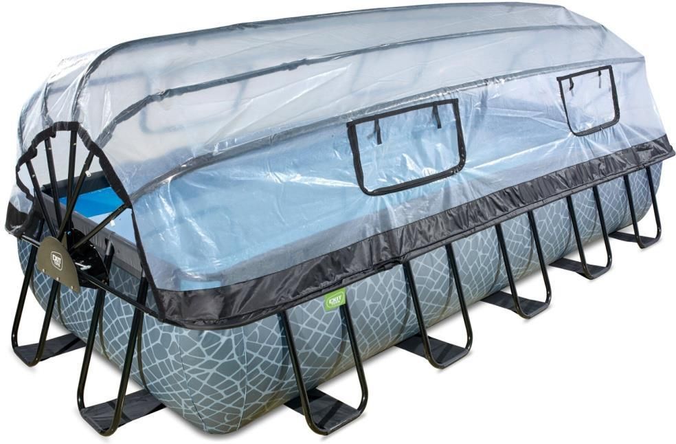 Basen Exit Stone 540X250X100cm Z Pokrywą, Filtrem Sand I Pompą Ciepła, Szary Wilamowice