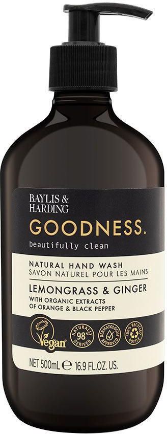 Goodness Lemongrass & Ginger Hand Wash to mydło do rąk (500 ml) o świeżym zapachu imbiru i trawy cytrynowej. Mydło do rąk zawiera naturalne składniki i organiczne ekstrakty. Goodness by Baylis & Harding oznacza dobroć; naturalną gamę olejków eterycznych, które są dobre dla skóry i środowiska. …