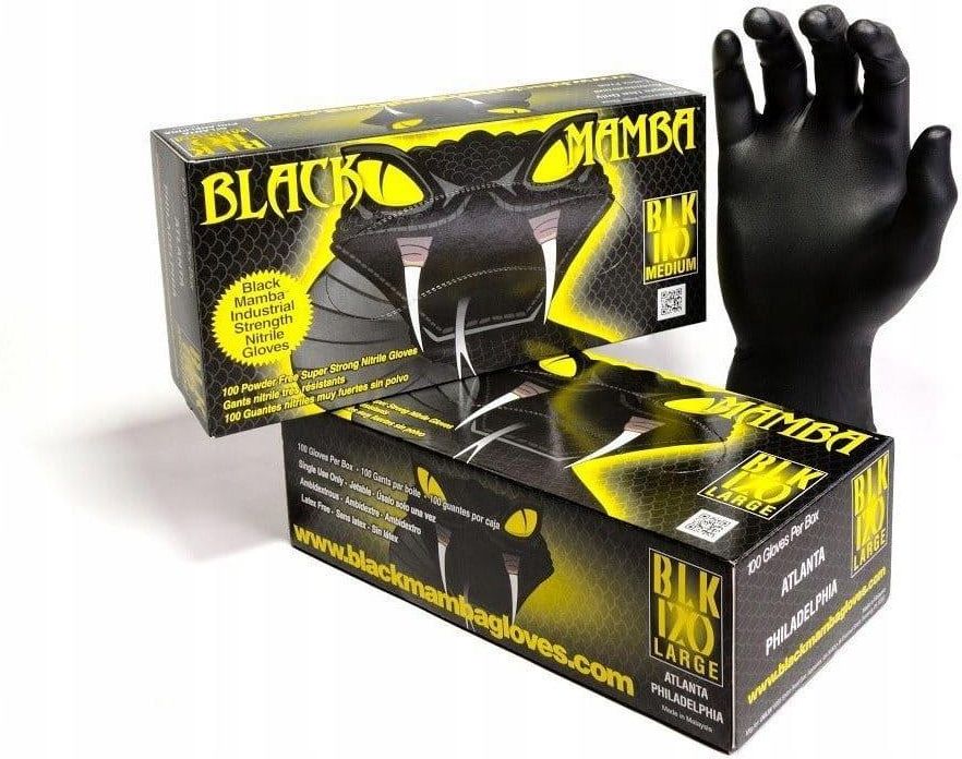 BLACK MAMBA to Nitrylowe, bezpudrowe rękawice ochronne trzykrotnie bardziej wytrzymałe od standardowych. Wyprodukowane z unikalnej mieszanki nitrylu, rękawice ochronne Black Mamba zaprojektowano tak by były najmocniejsze spośród dostępnych na rynku. Grubsze i mocniejsze niż jakiekolwiek inne rękawice nitrylowe. Rękawice Black Mamba charakteryzuje grubość ponad 0,6 mil . Trzykrotnie bardziej odporne na przebicie i przetarcia niż rękawiczki z lateksu bądź winylu. opatentowana formuła polimeru NITREX® w pełni teksturowana powierzchnia dla pewniejszego chwytania odporne na chemikalia, smary, oleje wyprodukowane z dwóch warstw. wyjątkowo łatwe do ubierania i zdejmowania. zapewniają najwyższy komfort użytkowania. OPAKOWANIE zawiera 100 szt. Rozmiar L