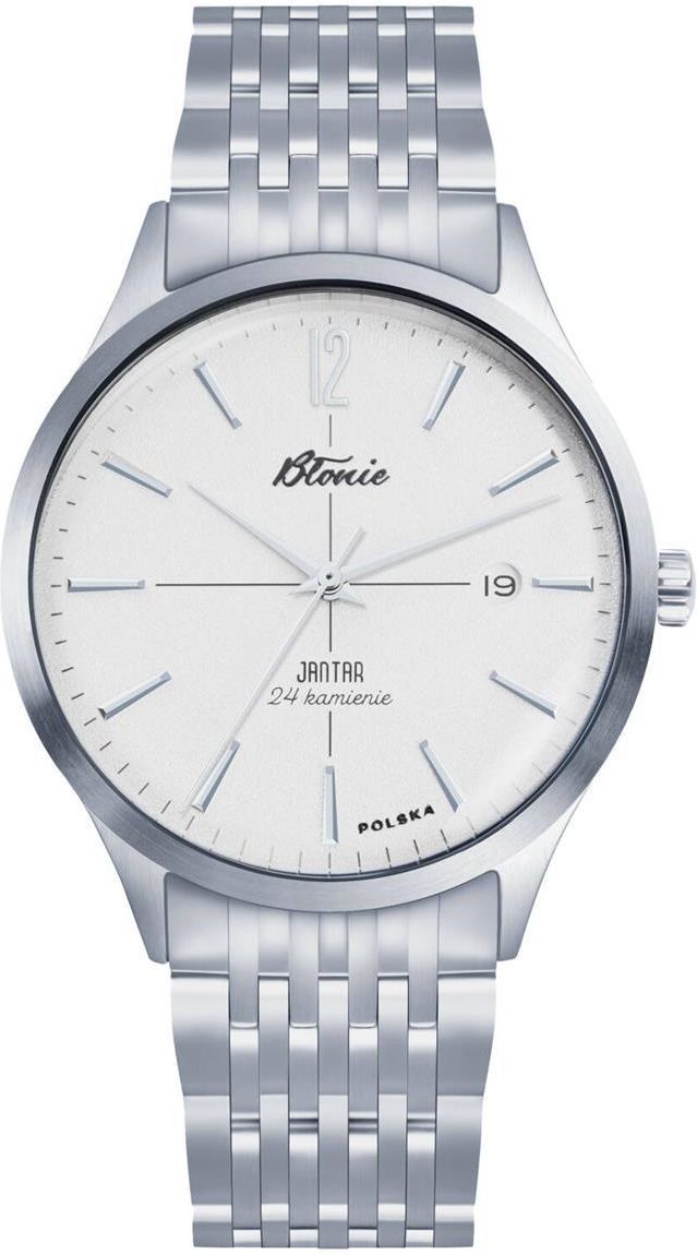 Męski zegarek Błonie Automatyczny JANTAR SZRON jest jednocześnie klasycznie elegancki, ale też posiada własny, rozpoznawalny charakter. Niezwykły czasomierz, który śladem poprzednika (z kolekcji Jantar) wzbudza zachwyt motywem powojennej elegancji i minimalizmem. Od teraz jednak z mniejszą kopertą w rozmiarze 40 milimetrów, która zapewnia harmonijne proporcje na nadgarstku i dodatkowo wpływa na komfort noszenia. Model został stworzony z naciskiem na precyzję zarówno w kwestii estetyki, jak i mechaniki. Każdy ⌚ zegarek Błonie dostarczymy w oryginalnym drewnianym pudełku Błonie i obowiązuje na niego pełna, oficjalna gwarancja. Pamiętaj, iż do zegarka Błonie możesz zamówić bezpłatne grawerowanie napisu okolicznościowego lub swojej osobistej dedykacji. Więcej szczegółów znajdziesz w dedykowanej zakładce Grawerowanie Mechanizm zegarka Błonie : Polski zegarek męski Błonie Jantar Szron to zegarek mechaniczny wyposażony dodatkowo w urządzenie nazywane automatycznym naciągiem. Głównym elementem tego urządzenia jest wahnik. Automatyczny naciąg pozwala wykorzystać naturalny ruch ręki, na której jest noszony zegarek, do nakręcania sprężyny napędowej, dzięki czemu zegarka standardowo nie trzeba nakręcać koronką. Mechanizm automatyczny Miyota 9015 na 24 kamieniach, 42-godzinną rezerwą chodu, 28 800 vph Koperta zegarka Błonie: Mechanizm japoński mieści się w okrągłej, wytrzymałej kopercie kolorze. Koperta wykonana wykonana została ze stali szlachetnej. Wykonanie z wysokiej jakości stopu antyalergicznej stali szlachetnej 316L ochroni Cię przed wystąpieniem alergii skórnych. Dodatkowo stop 316L charakteryzuje się podwyższoną odpornością przed czynnikami zewnętrznymi. Szkło zegarka Błonie: Zegarek wyposażony w szkło szafirowe, które oprócz niezwykłej twardości (stopień 9 w skali Mohsa) charakteryzuje się także odpornością na skrajne różnice temperaturowe i działanie rozpuszczalników. Oprócz tych zalet ma najlepsze właściwości optyczne. Szkło z wysokiej jakości tlenku aluminium. Tarcza zegarka Błonie: Projekt tarczy nawiązuje do modelu limitowanego Jantar poprzez linie, które krzyżują się w centralnym punkcie oraz charakterystyczne indeksy. Znajdziemy tutaj także odświeżony logotyp Błonie, nazwę modelu, minimalistyczny datownik, napis “Polska” oraz liczbę 24 kamieni w mechanizmie. Zminimalizowaniu uległ sekundnik, który został pozbawiony specyficznego czerwonego grotu. Wszystko to na chropowatej powierzchni tarczy o ziarnistej fakturze, która w wyjątkowy sposób współpracuje ze światłem uwydatniając oraz zwiększając czytelność detali w postaci aplikowanych indeksów oraz wskazówek. Jest to cecha najbardziej wyróżniająca czasomierz od jego poprzednika i znacząco wpływająca na jego unikatowość. Bransoleta zegarka Błonie: Wykorzystanie wysokiej jakości stali w bransolecie gwarantuje, że zegarek odporny jest na korozję i uszkodzenia oraz nie powoduje alergii. Stop stali szlachetnej charakteryzuje się optymalna odpornością na korozje. W zegarkach Błonie wykorzystany jest jeden z najlepszych stopów stali 316. Zapięcie zegarka Błonie Standardowe zamknięcie na podwójny zatrzask gwarantuje posiadaczowi tego zegarka, że nie zsunie mu się z ręki nawet w momencie niechcącego otwarcia. Natomiast zamknięcie bransolety odbywa się przez zatrzaśnięcie. Wodoszczelność zegarka Błonie: Zegarek z wodoszczelnością 50m (5 ATM), gwarantuje właścicielowi, że nie musi bać się zachlapań, czyli np. mycia rąk. Oprócz tego w zegarku można się kąpać, pływać na basenie itp. Punktualność - to zaleta charakteru i zasługa dobrego zegarka produkcji Błonie! Błonie to kultywowanie polskiej tradycji zegarmistrzowskiej i przywrócony do życia symbol narodowy. Za projekty wszystkich zegarków odpowiadają młodzi uzdolnieni polscy artyści. Logotyp marki został zrekonstruowany przez polskiego kaligrafa Adama Romualda Kłodeckiego. Chcemy, aby Błonie były nie tylko przywróconą do życia polską marką, ale przede wszystkim zawierały w sobie jak najwięcej polskiego ducha. Wszystkie zegarki Błonie przechodzą trzy-etapową kontrolę. Dodatkowo są indywidualnie kontrolowane w Polsce. Każda sztuka jest dokładnie sprawdzana przez polskiego zegarmistrza, który reguluje precyzję chodu zegarków. Nasza propozycja jest skierowana również do starszego pokolenia. Błonie stanowią idealny prezent dla ojców i dziadków mających w pamięci pierwsze modele kultowych zegarków.