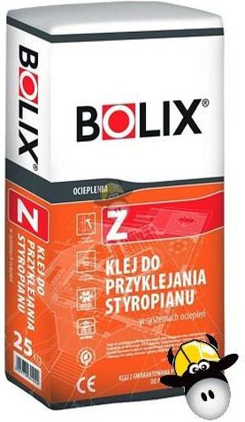 BOLIX Z Klej do przyklejania styropianu Opakowanie: 25kg BOLIX Z to zaprawa klejąca, idealna do przyklejania płyt styropianowych w systemach ociepleń ścian zewnętrznych budynków ETICS. Zaprawa cechuje się dobrą przyczepnością do podłoża mineralnego i styropianu, co pozwala na skuteczne przyklejanie płyt EPS, w tym grafitowych, oraz XPS. Jest dostosowana do wykonywania ociepleń budynków pasywnych i energooszczędnych o grubości płyt EPS do 50 cm. BOLIX Z można stosować na typowych podłożach mineralnych, takich jak beton, ściany murowane, tynki cementowe i cementowo-wapienne. Może być również używana do przyklejania drugiej warstwy ocieplenia na już ocieplonych ścianach. Zaprawa klejąca zapewnia solidne i trwałe połączenie płyt styropianowych z podłożem, co gwarantuje efektywne ocieplenie budynku. Właściwości Zużycie: ≥ 4,0 kg/m2 Temperatura otoczenia i podłoża w trakcie nakładania i wiązania: od +5°C do +25°C. Czas schnięcia i wiązania zaprawy klejącej po przyklejeniu płyt termoizolacyjnych: min. 48h Zastosowanie Przed użyciem należy odpowiednio przygotować podłoże, usunąć niezwiązane cząstki, zagruntować chłonne powierzchnie i wyrównać większe nierówności. Zawartość opakowania wsypać do pojemnika z odmierzoną ilością czystej wody (4,8 ÷ 5,3 litra) i dokładnie wymieszać mieszadłem wolnoobrotowym aż do uzyskania jednorodnej konsystencji. Po upływie 5 minut i ponownym wymieszaniu, zaprawa jest gotowa do użycia. Do każdego opakowania należy dozować taką samą ilość wody. Oprócz wody nie dodawac innych substancji. Montaż płyt styropianowych klejenie „pasmowo-punktowe” Przygotowaną zaprawę klejącą nakładać na płytę styropianową metodą „pasmowo-punktową” czyli pasmami o szer. 3-6 cm układanymi po obwodzie płyt, a na pozostałej powierzchni równomiernie i symetrycznie rozmieszczonymi „plackami” w ilości niemniejszej niż 3. Po nałożeniu zaprawy płytę bezzwłocznie przyłożyć do ściany w przewidzianym dla niej miejscu i docisnąć pacą aż do uzyskania równej powierzchni z płytami wcześniej przyklejonymi. Prawidłowo nałożona zaprawa klejąca po dociśnięciu do podłoża powinna zapewniać min. 40% efektywnej powierzchni klejenia, a grubość warstwy kleju nie powinna przekraczać 10 mm. klejenie „na grzebień” W przypadku równych i gładkich podłoży płyty termoizolacyjne można kleić tzw. metodą grzebieniową przy użyciu pacy zębatej (zęby 10-12 mm). Po nałożeniu zaprawy płytę bezzwłocznie przyłożyć do ściany w przewidzianym dla niej miejscu i docisnąć pacą aż do uzyskania równej powierzchni z płytami wcześniej przyklejonymi. Styropian przyklejać z zachowaniem mijankowego układu płyt. Niezbędne narzędzia Mieszarka lub wiertarka wolnoobrotowa (400÷500 obr./min) z mieszadłem koszykowym Szpachla oraz kielnia ze stali nierdzewnej Wiadro