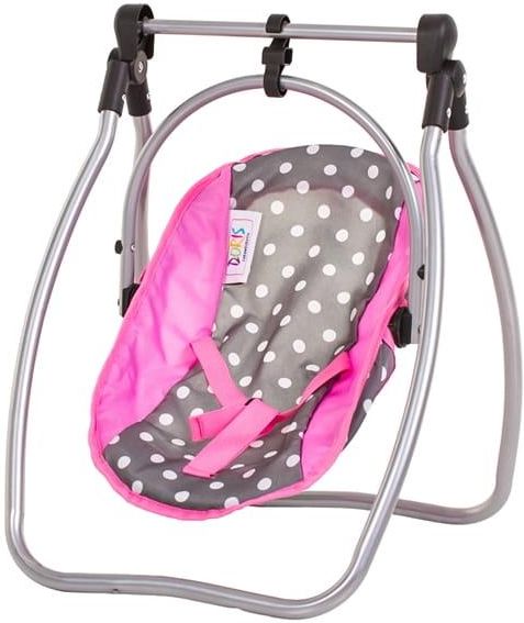 Doris Huśtawka + Krzesełko Dla Lalek 2W1 Zestaw Do Wózka L Szaro-Różowy Kropki 9397 Wilamowice