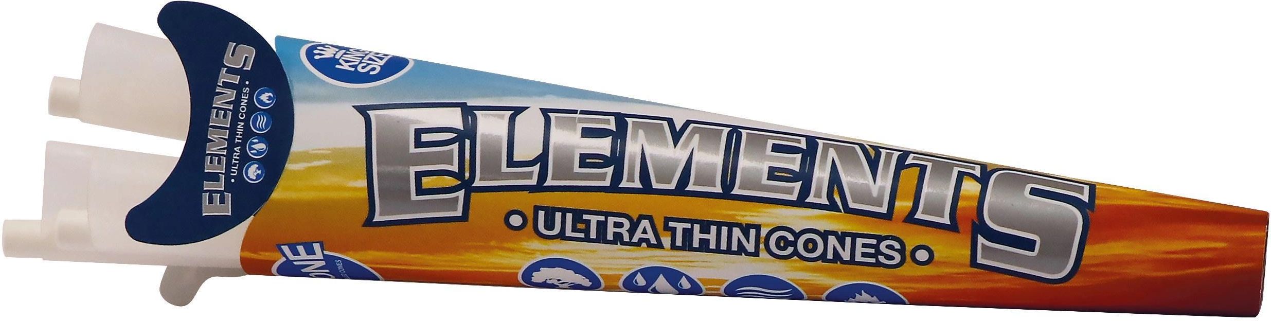 Bibułki Elements Cones King Size 3 szt. Gotowe do nabicia bletki Elements Cones King Size. Wykonane z naturalnych włókien roślinnych. Produkowane z wykorzystaniem energii odnawialnej, bez sztucznych dodatków. [Bletki](https://vaporshop.pl/pl/14-bibulki) Elements Cones odznaczają się wolnym, równomiernym spalaniem oraz ultra-cienką gramaturą.Posiadają znak wodny na całej długości w postaci skrzyżowanych linii. Nie wpływają na smak. Produkowane w Hiszpanii. Opakowanie zawiera: - 3 szt. bletek Cones King Size