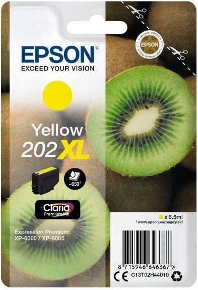 Atrament 202XL Kiwi Claria Premium, pojedyncze opakowanie, żółty Atrament Claria Premium tworzy dokumenty z ostrym i wyraźnym tekstem oraz nadzwyczajne, błyszczące zdjęcia ze szczegółami i bogatymi, żywymi kolorami. Doskonała równowaga w nowoczesnym domu. Teraz nie musisz już wybierać pomiędzy …