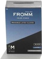Fromm Color Studio czarne lateksowe rękawiczki Fromm Color Studio Latex Gloves Najwyższej jakości premium biodegralowane czarne rękawiczki F9102 wielokrotnego użytku. Rękawiczki są bardzo mocne i niezwykle naturalne w dotyku. Nie zawierają pudru. Rozmiar: MKolor: czarneIlość: 12 szt.
