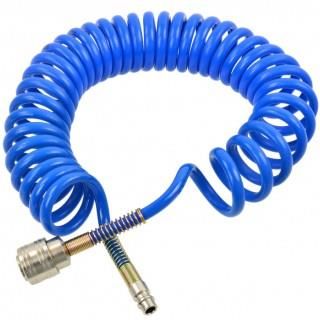 Wąż pneumatyczny spiralny, profesjonalny 5m 5x8mm niebieski ⭐⭐⭐⭐⭐ ➡️ Wysokiej jakości przewód spiralny o długości 5 metrów. Poliuretanowy wąż pneumatyczny samoczynnie zwijający się. ➡️ Może być stosowany ze wszystkimi urządzeniami napędzanymi powietrzem m.in. w warsztatach, garażach, fabrykach, …