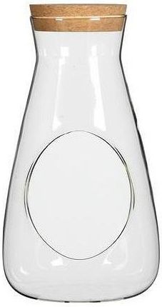 Duża, ozdobna, szklana butelka w kształcie stożka z korkiem marki IDEAS 4 Seasons. Wykonana została z cienkiego, przejrzystego, białego szkła, z korkową pokrywką. Wysokość słoika z pokrywką 21,5 cm. W butelce został wycięty ozdobny otwór o wymiarach: 7,5 cm x 6,3 cm. Można go wykorzystać w wieloraki sposób, między innymi jako pojemnik do wykonania "lasu w szkle". Doda odrobinę uroku każdemu pomieszczeniu. Kolejnym zastosowaniem jest wykorzystanie go w toaletce jako miejsce na przechowywanie kosmetyków, akcesoriów do włosów.Może posłużyć również jako ciekawy pojemnik do przechowywania np. cukierków. Słoik przeznaczony do mycia ręcznego, nie nadaje się na wysokie temperatury (wrzątek). Las w słoiku jest obecnie bardzo modną dekoracją, która uroczo ozdobi każde pomieszczenie. Dzięki tej butelce sami możemy stworzyć słój do mini instalacji florystycznej, który przykuje niejedno spojrzenie. Słoik nie zawiera żadnych dodatków w postaci roślin i ozdób. Wzór: 29435 butelka Produkt 1 x słoik 1 x korek Wymiary wysokość z korkiem 21,5 cm średnica górna 7,4 cm średnica dolna 12 cm wymiary otworu: 7,5 cm x 6,3 cm Materiał szkło korek Użytkowanie ozdobne
