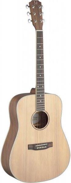 James Neligan ASY-D - gitara akustyczna Kiedy myśli się o akustycznych gitarach, zazwyczaj pierwszy na myśl przychodzi design dreadnought. Najbardziej popularny i rozpoznawalny, ten styl budowy gitary jest komfortowy dla każdego stylu gry. Modele z serii Asyla dostarczają świetne basy oraz czyste-ostre wysokie tony! Seria Asyla oferuje każdemu muzykowi szansę zagrania na profesjonalnym instrumencie w atrakcyjnej cenie! Wygląd jest celowo czysty i wyraźny z wrażeniem "naturalności" przy kontakcie. Zostało to osiągnięte poprzez "otwarto-porowe" wykończenie, znaczy to, że nic nie stoi pomiędzy gitarzystą, a korpusem gitary. Dźwięk jest tak pełny i czysty jak można się spodziewać - perfekcyjnie brzmi w gronie znajomych i daje przyjemność grany samemu. Gitara nawołuje wręcz by ją podnieść i zagrać! Korpus: Dreadnought Płyta wierzchnia: lity świerk Tył i boki: mahoń Szyjka: mahoń Podstrunnica: palisander Mostek: palisander Klucze: grover czarne Wykończenie: "otwarto-porowe", lakier Kolor: naturalny