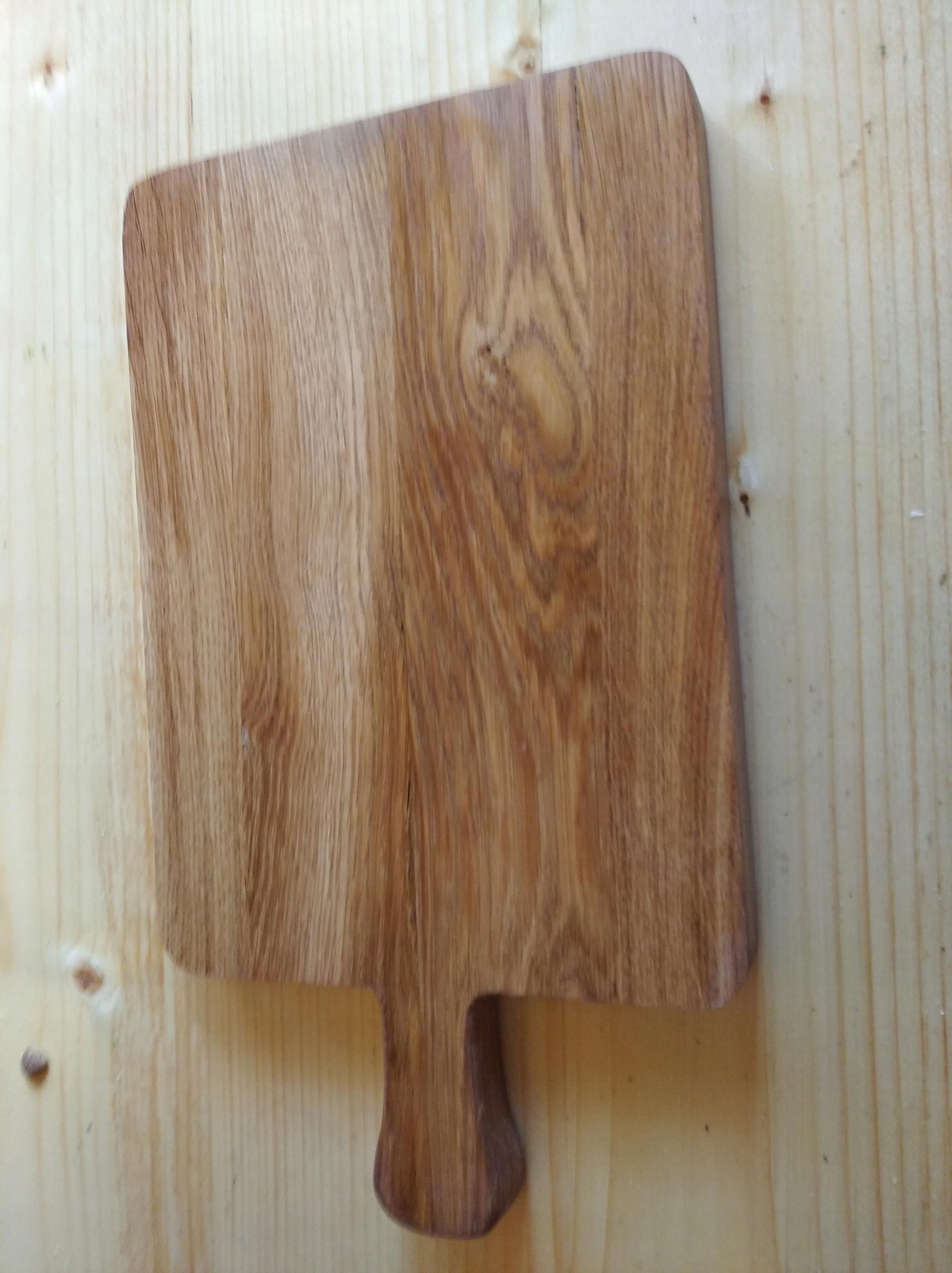 Dska do krojenia lub rozbijania mięsa wykonana z sezonowanego drewna dębowego grubosc ok 25mm co czyni ją bardzo odporna na zarysowania i uszkodzenia mechaniczne.Obszar pracy bez uchwytu ok 26cmx19cm