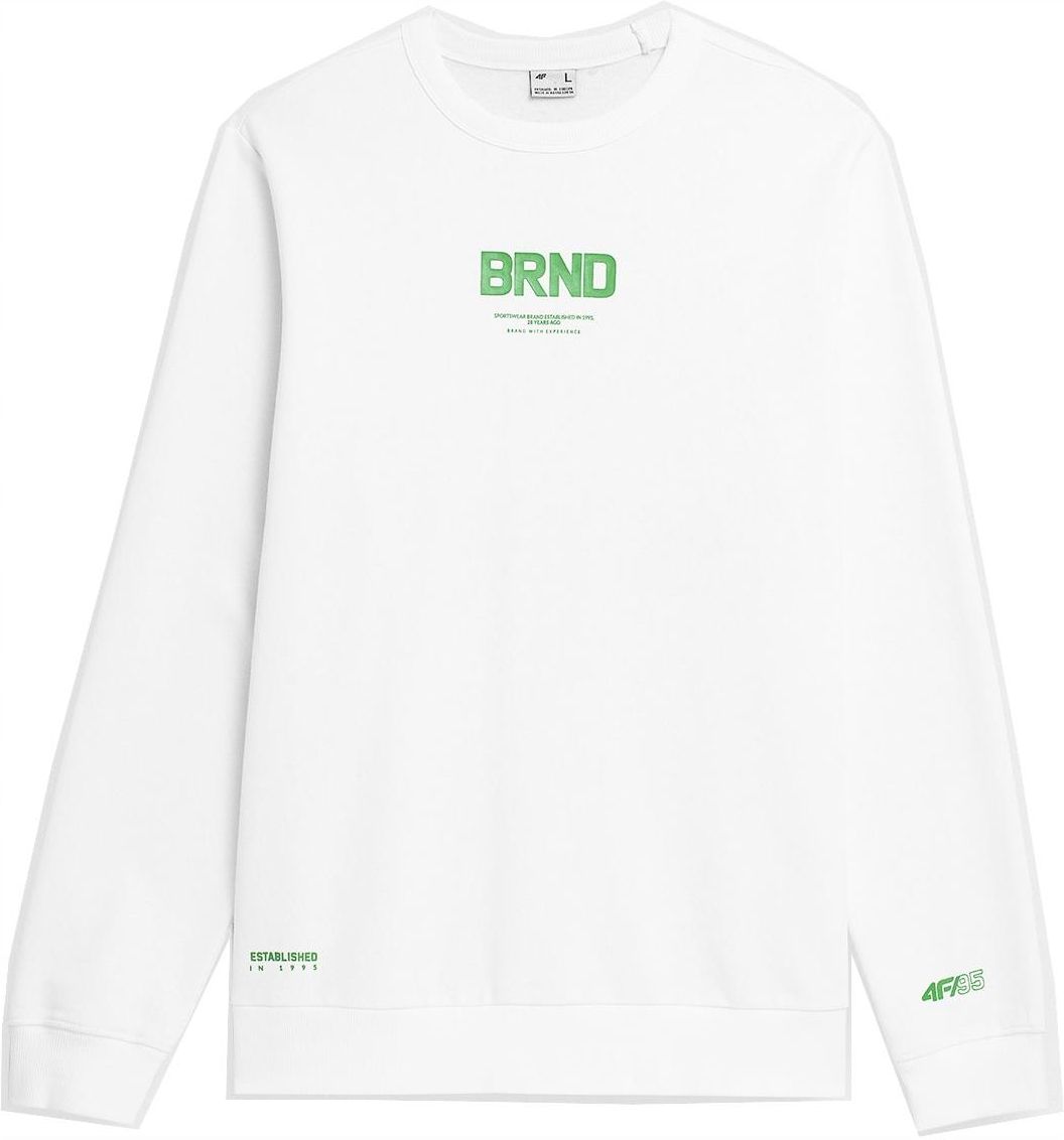 Męska bluza firmy 4Fmodel: SS23 SWSM237kolor: biały 10S Męska bluza dresowa wkładana przez głowę. Wykonana z miękkiej dzianiny, bez kaptura, o klasycznym kroju. Idealna do uprawiania sportu, zapewni wygodę podczas codziennego użytkowania. SZCZEGÓŁY PRODUKTU: materiał: 80% bawełna, 20% poliester ocieplane wnętrze: tak, mikropolarek gramatura: 250 gsm krój: regular wkładana przez głowę zaokrąglony dekolt rękawy i dół zakończone szerokim ściągaczem wykończenie antypilingowe