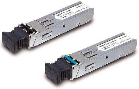 Rodzina MFB składa się z modułów transceiverów Small Form Factor Pluggable (SFP), które zostały specjalnie zaprojektowane do wysokowydajnego zintegrowanego łącza danych dwukierunkowych na światłowodu jednomodowym. Moduły transceiverowe są zgodne z Umową SFP Multisource Agreement (MSA) i można je podłączyć na gorąco. Moduły te oferują łatwy sposób instalacji na portach zgodnych z zgodnością SFP MSA w dowolnym momencie, bez zakłóceń w pracy sprzętu hosta. Transceivery MFB SFP wykorzystujące długofalowe (1310nm) FP LD umożliwiają transmisję danych na odległość do 2 km na światłowodzie wielomodowym oraz do 60 km na światłowodzie jednomodowym. Aby sprostać rosnącemu zapotrzebowaniu na przemysłowe rozwiązania światłowodowe Ethernet, Planet wprowadził serię transceiverów MFB-T 100Base-FX, które mogą działać niezawodnie w warunkach elektrycznie wymagających, klimatycznych i o szerokim zakresie temperatur (-40°C do 85°C). Seria transceiverów MFB-T 100Base-FX zapewnia łatwe i szybkie połączenie 100Base-FX dla przemysłowego sprzętu o temperaturach na całym świecie. Informacje o kolejności MFB-FX SFP-Port 100BASE-FX Transceiver (1310nm) -2km MFB-F20 SFP-Port 100BASE-FX Transceiver (1310nm) - 20 km MFB-FA20 SFP-Port 100BASE-BX Transceiver (WDM, TX: 1310nm) -20 km MFB-FB20 SFP-Port 100BASE-BX Transceiver (WDM, TX: 1550nm) -20 km MFB-F40 SFP-Port 100BASE-FX Transceiver (1310nm) - 40 km MFB-F60 Transceiver SFP-Port 100BASE-FX (1310nm) - 60 km MFB-TFX SFP-Port 100BASE-FX Transceiver (1310nm) -2km (-40~85 stopni C) MFB-TF20 SFP-Port 100BASE-FX Transceiver (1310nm) - 20 km (-40~85 stopni C) MFB-TFA20 SFP-Port 100BASE-BX (WDM, TX: 1310nm) moduł mini-GBIC - 20km (-40~85 stopni C) MFB-TFB20 SFP-Port 100BASE-BX (WDM, TX: 1550nm) mini-GBIC moduł 20km (-40~85 stopni C) MFB-TFA40 SFP-Port 100BASE-BX (WDM, TX: 1310nm) mini-GBIC moduł 40km (-40~85 stopni C) MFB-TFB40 SFP-Port 100BASE-BX (WDM, TX: 1550nm) mini-GBIC moduł 40km (-40~85 stopni C) MFB-TSB Transceiver SFP-Port 100BASE-BX (Multi-mode/WDM, TX: 1550nm RX:1310nm / DDM) - 2km (-40~85 stopni C) MFB-TF120 SFP-Port 100BASE -FX Transceiver (1550nm) - 120km (-40~85°C) MFB-TSA SFP-Port 100BASE-BX (Multi-mode/WDM, TX:1310nm) mini-GBIC moduł -2km (-40~85°C) MFB-TFB60 MFB-TFB60 SFP-port 100BASE-BX (WDM, TX:1550nm) moduł mini-GBIC -60km (-40~85°C) MFB-F120 SFP-Port 100BASE -FX Transceiver (1550nm) - 120 km MFB-TFA60 SFP-Port 100BASE-BX (WDM, TX: 1310nm) mini-GBIC moduł 60km (-40~85°C)