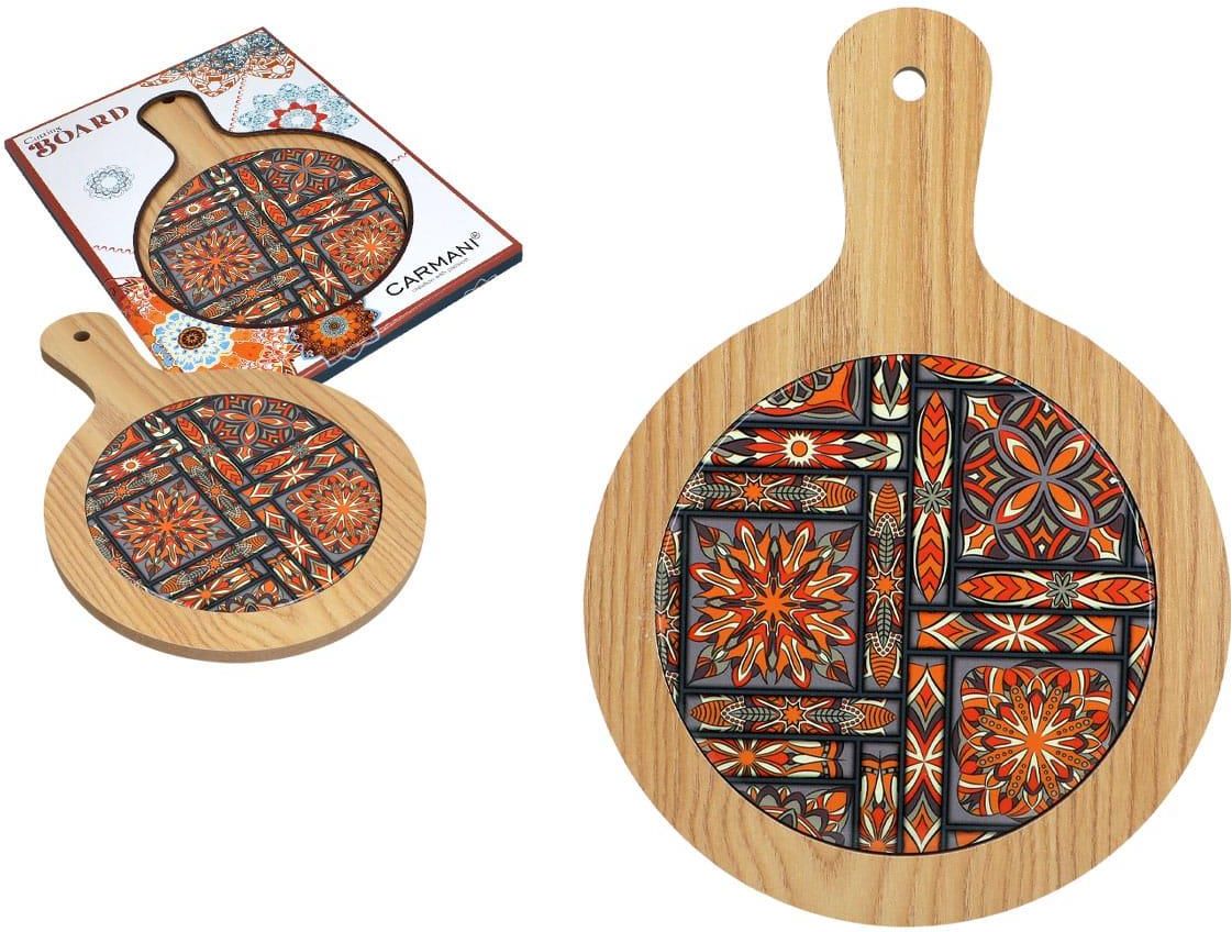 Wprowadź do swojej kuchni nutę egzotyki i elegancji – zakochaj się w desce do krojenia z serii orientalnej marki Carmani, która zachwyca od pierwszego spojrzenia! To nie jest zwykła deska – to piękna kompozycja naturalnego drewna i ceramicznej płytki, ozdobionej barwnym, marokańskim wzorem, który wnosi ciepło i charakter do każdego wnętrza. Gdy tylko położysz ją na blacie, kuchnia zyska zupełnie nowy, stylowy klimat. Funkcjonalność? Idealna do krojenia, serwowania i... zachwycania! Świetnie sprawdzi się też jako podstawka pod gorące naczynia – trwała, solidna i zachwycająca. Jej poręczny rozmiar (19,5 × 27,3 cm) i wygodna rączka sprawiają, że sięgasz po nią z przyjemnością każdego dnia. A do tego zapakowana w ozdobne pudełko z okienkiem – gotowa na prezent lub... żeby sprawić radość samej sobie. Deska, która robi wrażenie – codziennie. Pokochasz ją od pierwszego użycia! Wzór: 008-1452 Produkt 1 x podkładka z rączką 1 x pudełko Wymiary szerokość deski 19,5 cm długość deski 27,3 cm średnica talerza 15 cm wysokość deski 1 cm waga deski 325 g wymiary pudełka 20 cm x 28 cm x h1,5 cm Materiał ceramika drewno Użytkowanie dopuszczone do kontaktu z żywnością