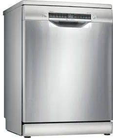 Automatyczne otwieranie drzwi:tak;Czas trwania programu eco:3:35;Długość kabla:0;Długość węża dopływowego:165 cm;Długość węża odpływowego:190 cm;Dodatkowe informacje:automatyczne otwieranie drzwi, system ochrony szkła, automatyka zmywania;Dostosowanie wnętrza do załadunku:ruchome kosze;Funkcje dodatkowe:blokada dostępu do panelu sterowania, system ochrony szkła, automatyka zmywania, zdalne sterowanie smartfonem;Funkcje dodatkowe:możliwość skrócenia czasu zmywania, czyszczenie zmywarki Machine Care, funkcja dezynfekcji;Gwarancja:24 miesiące;Informacja o pracy zmywarki:wyświetlanie czasu do końca programu;Inne zabezpieczenia:blokada dostępu do panelu sterowania;Zgodność z aplikacją:Bosch/Siemens Home Connect;Kompatybilność aplikacji:Android od wersji 6.0, iOS od wersji 14.0, Uwaga: minimalne obsługiwane wersje dla każdego systemu operacyjnego mogą się w przyszłości zmieniać;Interoperacyjność 3 - tekst:Niektóre funkcjonalności wymagają zainstalowania aplikacji, którą pobrać można z Google Play oraz Apple Store.;Interoperacyjność 4 - link Google Play:https://play.google.com/store/apps/details?id=com.bshg.homeconnect.android.release&hl=pl&gl=US;Interoperacyjność 5 - link Apple Store:https://apps.apple.com/pl/app/home-connect-app/id901397789?l=pl;Interoperacyjność 6 - obowiązkowe:Produkt może wymagać aktualizacji;Klasa energetyczna:B;Klasa zmywania:A;Kolor:srebrny;Dolny kosz:składane kolce;Górny kosz:trzypoziomowa regulacja kosza, półki na filiżanki, składane kolce;Liczba programów:6;Możliwość zabudowy pod blatem:tak;System mycia sztućców:szuflada na sztućce;Opóźnienie startu pracy:tak;Oświetlenie wewnętrzne:nie;Panel sterujący:zewnętrzny (odkryty);Podłączenie do ciepłej wody:tak;Pojemność:14 kpl.;Połowa załadunku:tak;Poziom hałasu:42 dB;Klasa poziomu hałasu:B;Poziom hałasu:42 dB;Programy zmywania:automatyczny, cichy, ekonomiczny (eco), garnki, program "godzinny", ulubiony;Rodzaj etykiety:nowa;Seria:Bosch Serie 4;Seria:Bosch Serie 4;Silnik inverterowy:tak;Sterowanie:elektroniczne;Systemy suszenia:automatyczne uchylanie drzwi;Temperatury zmywania:50, 65, 70, auto 45-65;Programy zmywania:50, 65, 70, auto 45-65;Wariantowanie - mycie sztućców:szuflada;Wskaźnik braku nabłyszczacza:tak;Wskaźnik braku soli:tak;Wykonanie dna zmywarki:stal nierdzewna;Głębokość:60 cm;Szerokość:60 cm;Wysokość:84,5 cm;Wyposażenie:instrukcja obsługi w języku polskim, szuflada na sztućce, wąż dopływowy, wąż odpływowy;Wyświetlacz elektroniczny:LED (diodowy);Zabezpieczenie przed zalaniem:wąż dopływowy;Zastosowane technologie:system koszy Bosch/Siemens VarioFlex, szuflada Bosch/Siemens Vario3, skrócenie cyklu Bosch SpeedPerfect, silnik bezszczotkowy Bosch EcoSilence Drive, wymiennik ciepła Bosch/Siemens, zdalne sterowanie Bosch/Siemens Home Connect, ochrona przed odciskami palców Bosch/Siemens AntiFingerprint, automatyka zmywania Bosch AquaSensor;Zużycie energii - cykl:0,65 kWh;Zużycie energii w trybie czuwania:0,5 W;Zużycie prądu (100 cykli):65 kWh;Zużycie wody - cykl:9 l