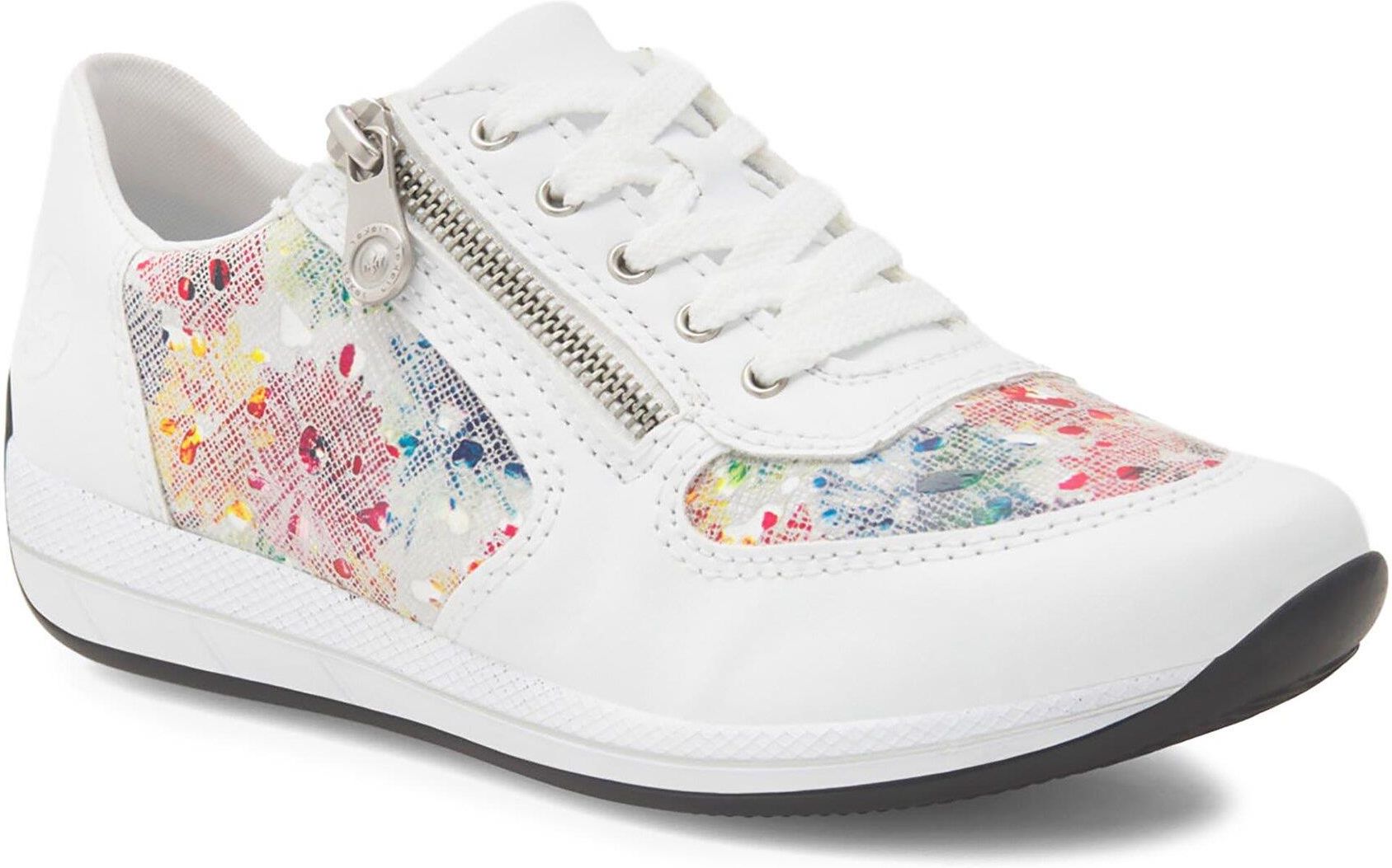 Elegancja w codziennej odsłonie? To możliwe z półbutami marki Rieker! Czysty, biały kolor nadaje świeżości, a wytrzymała skórzana cholewka gwarantuje komfort na długo. Płaski obcas to synonim wygody, która umożliwi Ci aktywny dzień bez zmęczenia. Zapięcie to połączenie suwaka i sznurowania, co nie tylko ułatwia zakładanie, ale również dodaje butom sportowego sznytu. Okrągły nosek zapewni Twoim stopom przestrzeń, a casualowy styl pozwoli na bezproblemowe dopasowanie do wielu outfitów. Buty Rieker to wybór perfekcyjny dla kobiet ceniących komfort i modny wygląd! Od ponad stu lat marka Rieker oferuje niezwykle komfortowe i trwałe obuwie, które powstaje z myślą o zdrowiu stóp. Dzięki wieloletniemu doświadczeniu w produkcji obuwia, ta niemiecka marka doskonale potrafi łączyć wygodę ze stylem, dlatego w ofercie znajdziesz buty w modnych, oryginalnych fasonach, które każdemu przypadną do gustu. Buty Rieker tworzone są z materiałów wysokiej jakości, przez co odznaczają się wyjątkową elastycznością i trwałością, ale też lekkością. Ponadto w obuwiu stosuje się szerszą formę zapewniającą odpowiednią stabilizację stopy, specjalne podeszwy absorbujące wstrząsy oraz odciążające stawy i kręgosłup, a także wyjmowane wkładki z pianki Memory Foam, która idealnie dopasowuje się do kształtu stóp. To doskonałe produkty dla tych, którzy ponad wszystko cenią sobie komfort. Przekonaj się!