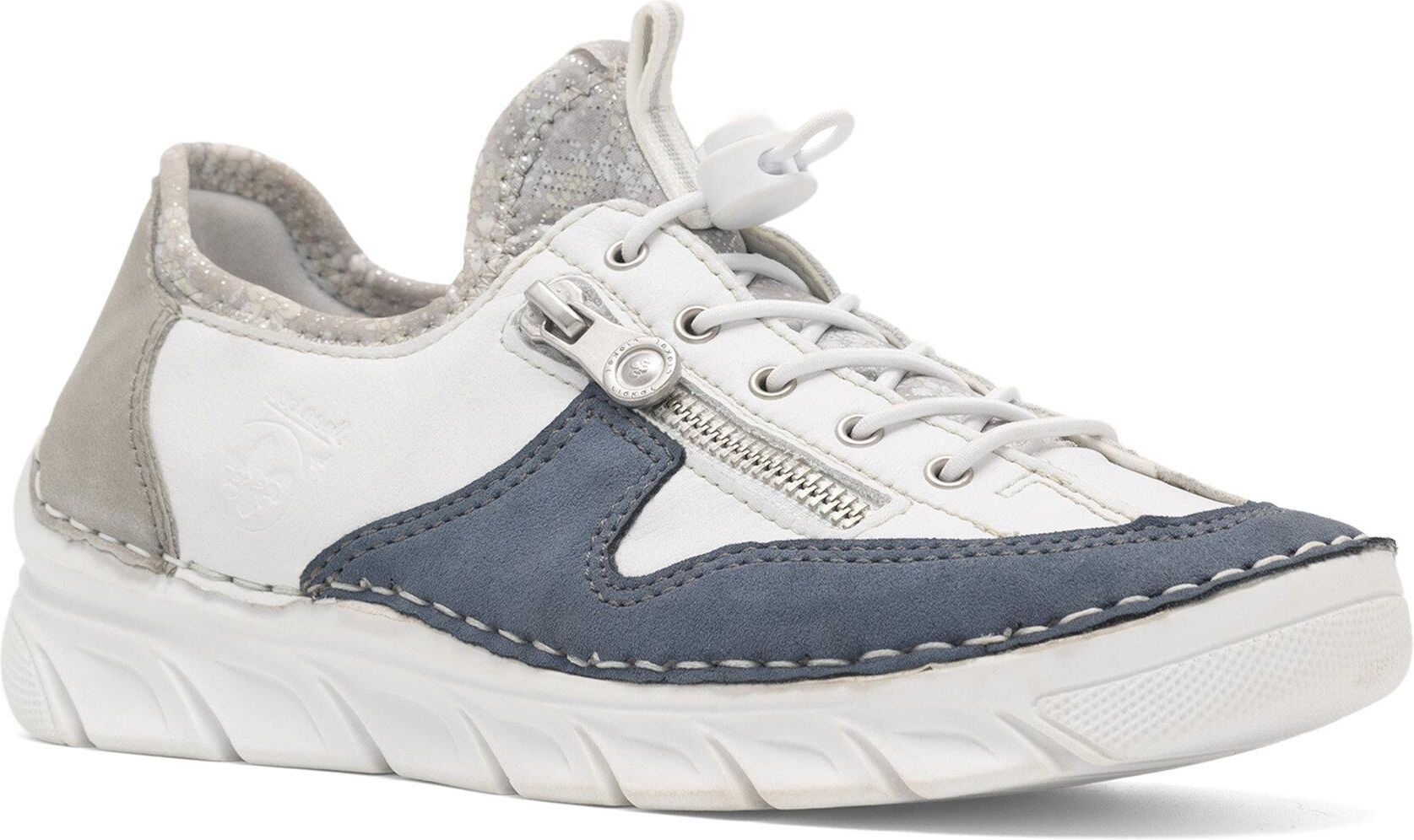 Półbuty marki Rieker to idealne uzupełnienie casualowej garderoby. Wykonane z naturalnej skóry, w klasycznym białym kolorze, są synonimem uniwersalności. Płaski obcas zapewnia wygodę na co dzień, a sznurowanie gwarantuje optymalne dopasowanie do stopy. Okrągły nosek dodaje butom subtelnej elegancji, pozwalając na łączenie ich z różnorodnymi stylizacjami. W tych butach każdy krok to komfort w modnym wydaniu! Od ponad stu lat marka Rieker oferuje niezwykle komfortowe i trwałe obuwie, które powstaje z myślą o zdrowiu stóp. Dzięki wieloletniemu doświadczeniu w produkcji obuwia, ta niemiecka marka doskonale potrafi łączyć wygodę ze stylem, dlatego w ofercie znajdziesz buty w modnych, oryginalnych fasonach, które każdemu przypadną do gustu. Buty Rieker tworzone są z materiałów wysokiej jakości, przez co odznaczają się wyjątkową elastycznością i trwałością, ale też lekkością. Ponadto w obuwiu stosuje się szerszą formę zapewniającą odpowiednią stabilizację stopy, specjalne podeszwy absorbujące wstrząsy oraz odciążające stawy i kręgosłup, a także wyjmowane wkładki z pianki Memory Foam, która idealnie dopasowuje się do kształtu stóp. To doskonałe produkty dla tych, którzy ponad wszystko cenią sobie komfort. Przekonaj się!