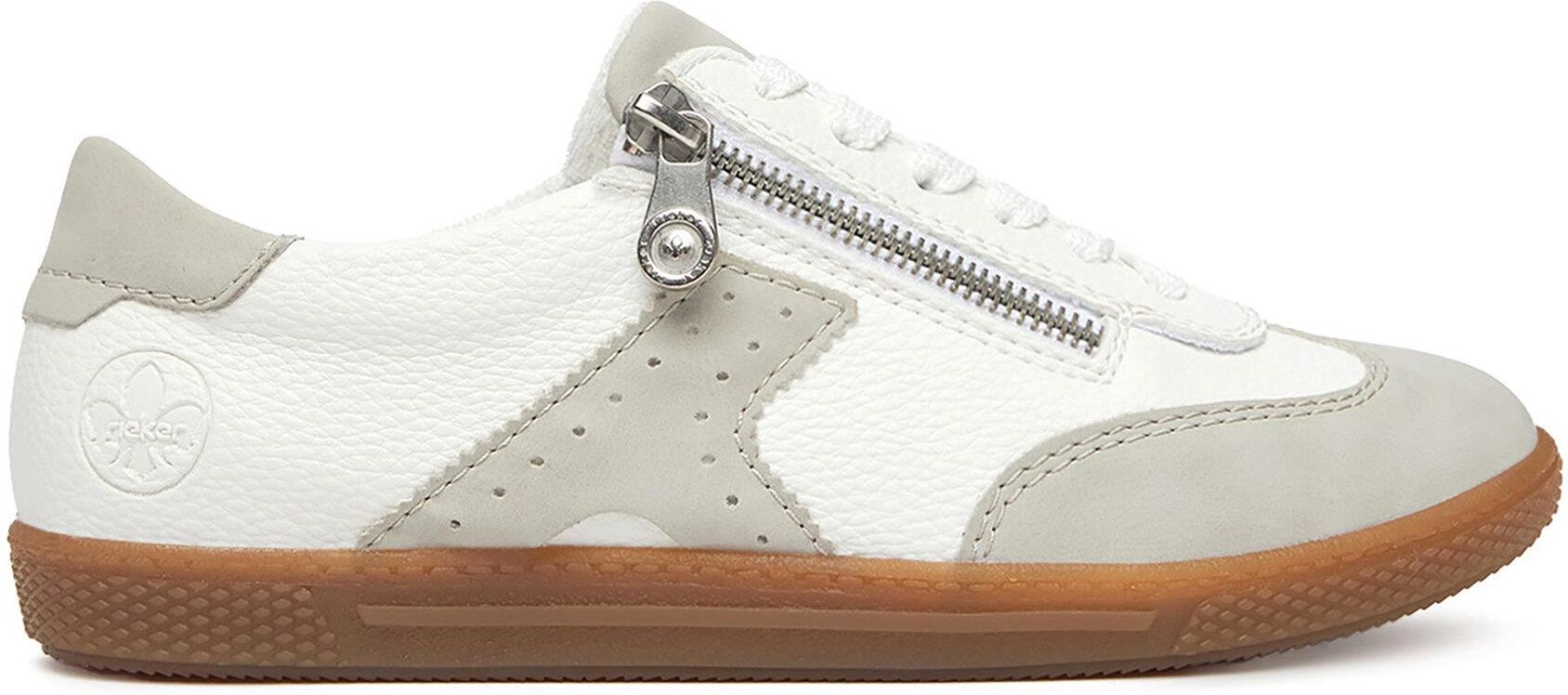 Białe sneakersy Rieker to idealny wybór dla kobiet, które cenią połączenie stylu i komfortu. Wykonane z wysokogatunkowego tworzywa syntetycznego, buty te są trwałe i łatwe w utrzymaniu czystości. Sznurowanie pozwala na idealne dopasowanie do stopy, a okrągły nosek zapewnia dodatkową przestrzeń dla palców, co zwiększa komfort noszenia. Dzięki technologii Rieker Antistress, obuwie to oferuje wyjątkową amortyzację, redukując nacisk na stopy i poprawiając komfort chodzenia przez cały dzień. Te sneakersy to doskonały wybór na co dzień, łącząc w sobie modny wygląd i wygodę. Od ponad stu lat marka Rieker oferuje niezwykle komfortowe i trwałe obuwie, które powstaje z myślą o zdrowiu stóp. Dzięki wieloletniemu doświadczeniu w produkcji obuwia, ta niemiecka marka doskonale potrafi łączyć wygodę ze stylem, dlatego w ofercie znajdziesz buty w modnych, oryginalnych fasonach, które każdemu przypadną do gustu. Buty Rieker tworzone są z materiałów wysokiej jakości, przez co odznaczają się wyjątkową elastycznością i trwałością, ale też lekkością. Ponadto w obuwiu stosuje się szerszą formę zapewniającą odpowiednią stabilizację stopy, specjalne podeszwy absorbujące wstrząsy oraz odciążające stawy i kręgosłup, a także wyjmowane wkładki z pianki Memory Foam, która idealnie dopasowuje się do kształtu stóp. To doskonałe produkty dla tych, którzy ponad wszystko cenią sobie komfort. Przekonaj się!