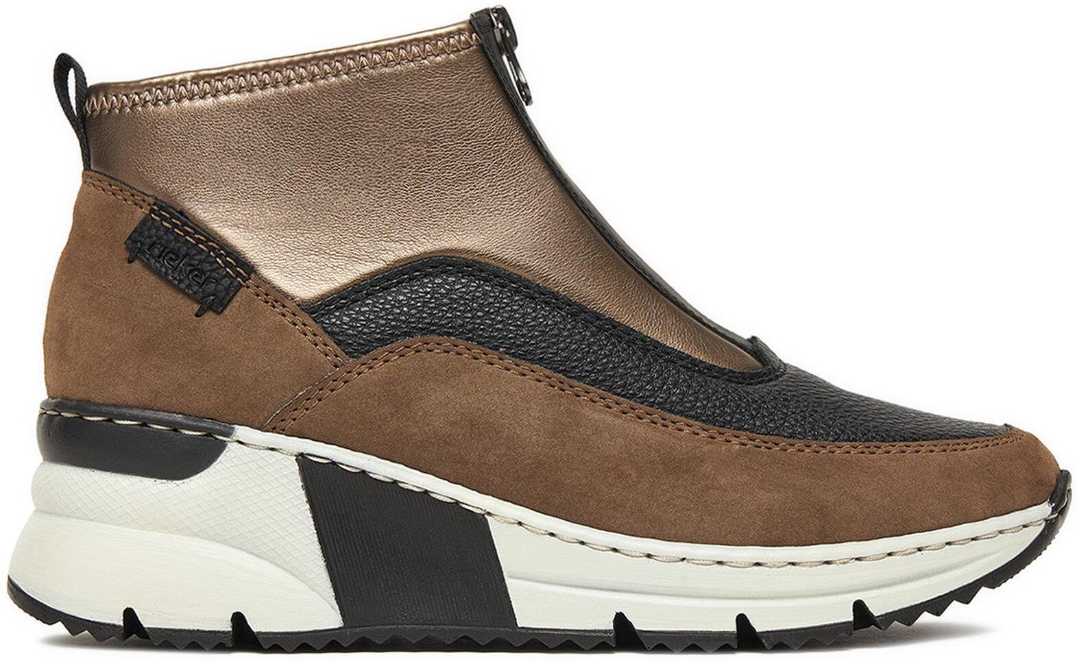 Dodaj do swojej garderoby styl i komfort dzięki damskim botkom marki Rieker! Wykonane z wysokiej jakości materiału włókienniczego, buty te zapewniają trwałość i wygodę użytkowania. Ocieplone wnętrze sprawia, że idealnie sprawdzą się w chłodniejsze dni, a praktyczne zapięcie na suwak ułatwia ich zakładanie i zdejmowanie. Okrągły nosek dodaje im uniwersalnego charakteru, a technologia Rieker Antistress dba o Twoje stopy, zapewniając doskonałą amortyzację i wygodę na każdym kroku. Te botki to idealny wybór na co dzień dla kobiet, ceniących funkcjonalność i modny wygląd! Od ponad stu lat marka Rieker oferuje niezwykle komfortowe i trwałe obuwie, które powstaje z myślą o zdrowiu stóp. Dzięki wieloletniemu doświadczeniu w produkcji obuwia, ta niemiecka marka doskonale potrafi łączyć wygodę ze stylem, dlatego w ofercie znajdziesz buty w modnych, oryginalnych fasonach, które każdemu przypadną do gustu. Buty Rieker tworzone są z materiałów wysokiej jakości, przez co odznaczają się wyjątkową elastycznością i trwałością, ale też lekkością. Ponadto w obuwiu stosuje się szerszą formę zapewniającą odpowiednią stabilizację stopy, specjalne podeszwy absorbujące wstrząsy oraz odciążające stawy i kręgosłup, a także wyjmowane wkładki z pianki Memory Foam, która idealnie dopasowuje się do kształtu stóp. To doskonałe produkty dla tych, którzy ponad wszystko cenią sobie komfort. Przekonaj się!