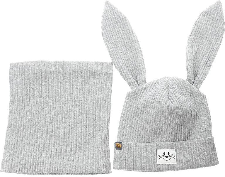 Szary Zestaw Czapka i Komin Zając Dla Dziewczynki Armodo