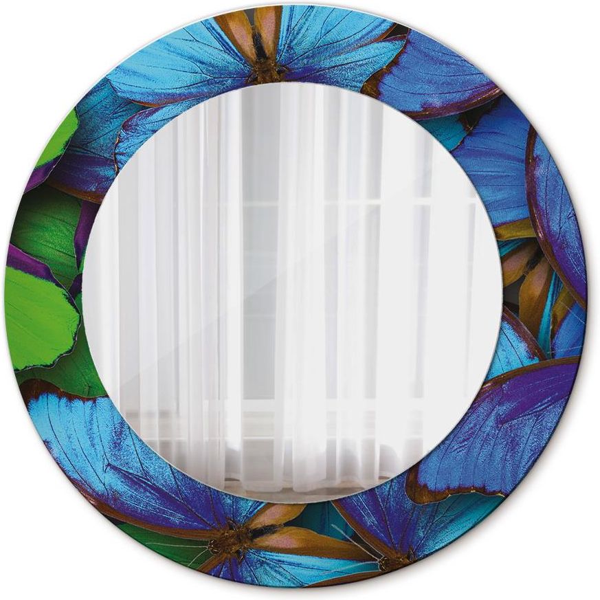 Tulup Niebieski I Zielony Motyl Lustro Dekoracyjne Okrągłe Fi 100 Cm Wilamowice