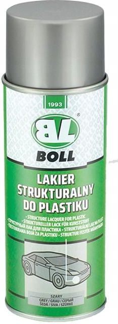 BOLL - lakier strukturalny do plastiku, spray, szary, 400ml. Opis produktu / charakterystyka : lakier strukturalny do plastiku jest szybko schnąca i dobrze wiążącą farbą na bazie żywic akrylowych, doskonale nadaje się do malowania zderzaków plastikowych, listew i innych elementów plastikowych, …