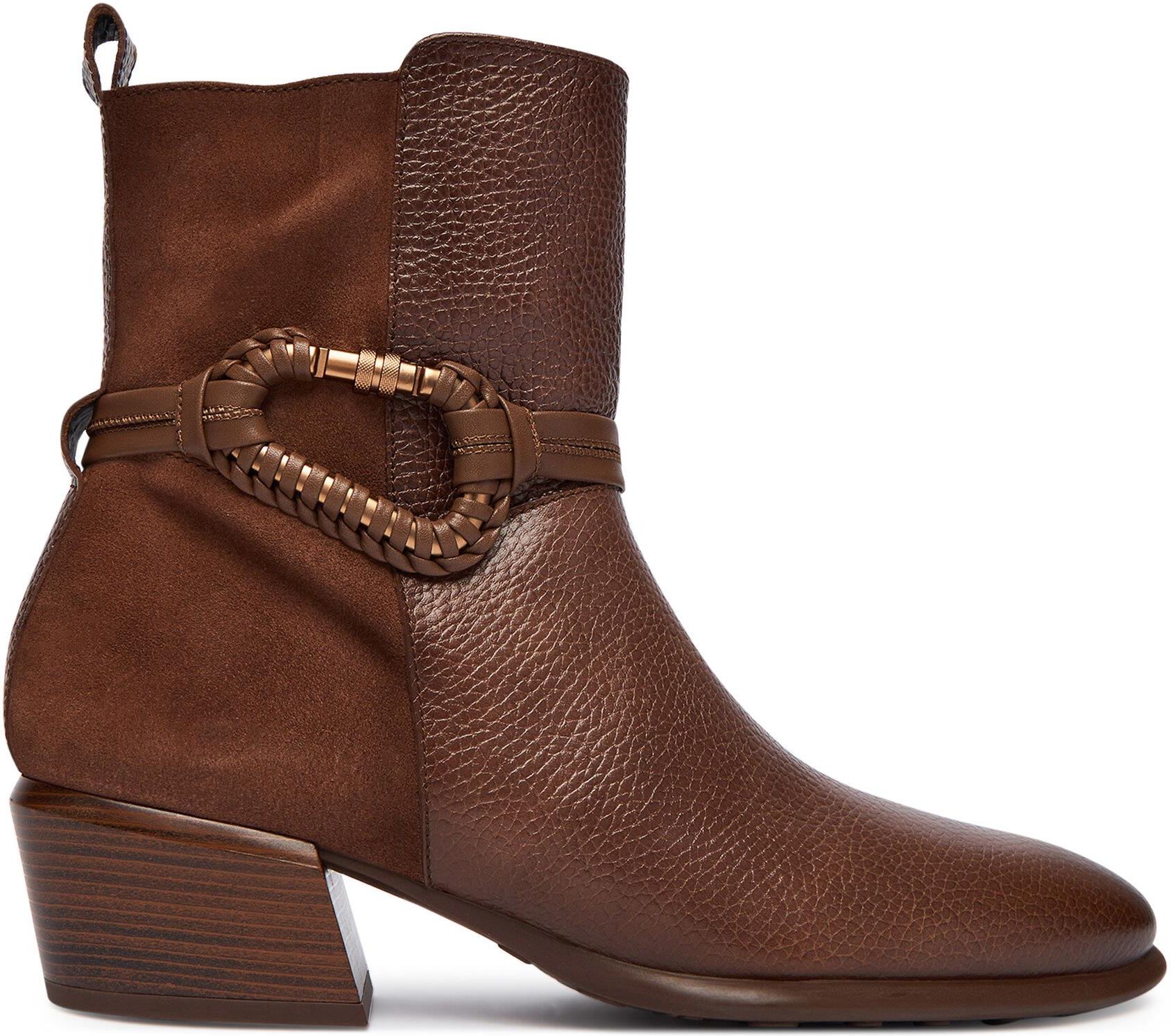 Hispanitas VERONA botki PHI254297 bolero velour avellana 41 Eleganckie botki damskie Hispanitas Verona (kod: PHI254297) to stylowe obuwie na chłodniejsze dni. Wykonane z wysokiej jakości brązowej skóry, posiadają wygodne zapięcie na suwak oraz skórzane wnętrze i wkładkę. Technologia Triflow …