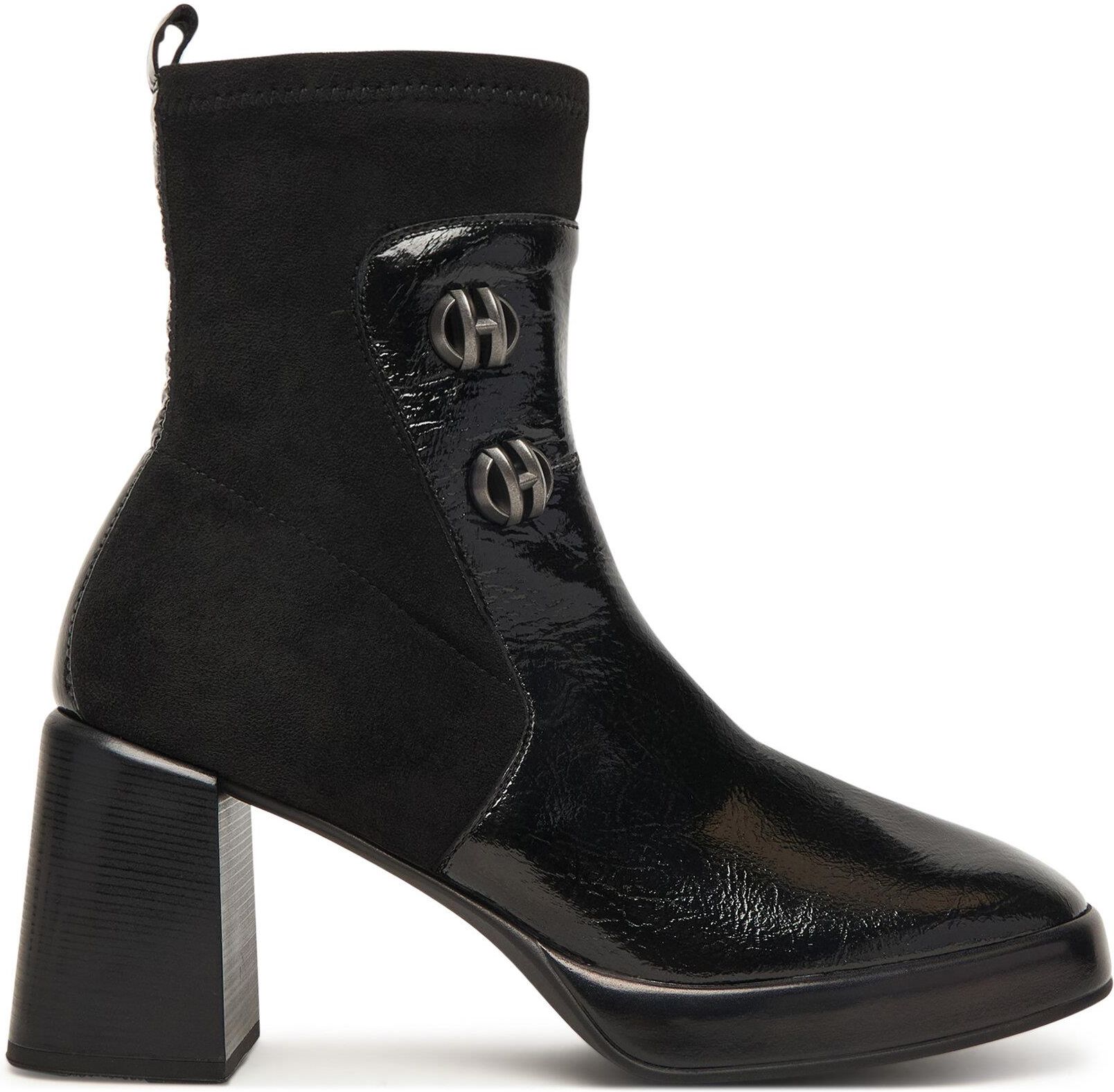 Podkreśl swój styl z damskimi botkami marki Hispanitas! Wykonane z lakierowanej skóry naturalnej, zachwycają eleganckim wykończeniem, które przyciąga spojrzenia. Okrągły nosek dodaje im subtelności, a obcas typu słupek zapewnia stabilność i wygodę podczas chodzenia. Praktyczne zapięcie na suwak ułatwia szybkie zakładanie i zdejmowanie. Te botki to idealne połączenie klasyki i nowoczesności – doskonale sprawdzą się zarówno na co dzień, jak i podczas bardziej formalnych okazji. Postaw na wyjątkową jakość i styl od Hispanitas!