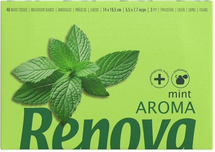 Chusteczki Higieniczne w Pudełku Mini Renova Mięta 3-Warstwy 46 sztuk Odświeżające chusteczki higieniczne z naturalnym olejkiem miętowym to nowość od Renova, która łączy funkcjonalność, delikatność i świeżość. Kompaktowe pudełko typu mini pasuje do schowka w aucie, plecaka lub torebki, zapewniając wysoką higienę w każdej sytuacji. Wyróżniki / Cechy 3-warstwowe – wyjątkowo miękkie i chłonne Aromatyzowane olejkiem miętowym – naturalna świeżość Subtelny zapach mięty – przyjemny i orzeźwiający 46 sztuk w poręcznym pudełku mini Rozmiar chusteczki: 19,5 x 14 cm Rozmiar FIT – idealne do samochodu, biura i torebki Przebadane dermatologicznie – bezpieczne dla skóry Wykonane z 100% pierwotnej pulpy Czy zapach chusteczek higienicznych Aroma jest intensywny? Chusteczki z serii Renova Aroma wyróżniają się subtelnym i naturalnym zapachem, który nie jest intensywny ani drażniący. Wersja miętowa oferuje świeże, lekko chłodzące nuty, idealne na co dzień – zarówno w domu, jak i w podróży. Aromat nie przytłacza, lecz daje uczucie czystości i komfortu. Czym aromatyzowane są chusteczki z serii Aroma? Wszystkie warianty Renova Aroma są aromatyzowane naturalnymi olejkami eterycznymi. W przypadku tej wersji zastosowano olejek miętowy, znany ze swoich właściwości odświeżających i kojących. Dzięki temu chusteczki nie tylko skutecznie oczyszczają, ale też pozostawiają przyjemny, naturalny zapach. O marce Renova Renova to portugalska marka, która od lat dostarcza innowacyjne produkty higieniczne o niebanalnym designie i wysokiej jakości. Seria Aroma Mini została stworzona z myślą o osobach ceniących funkcjonalność, estetykę i świeżość naturalnych składników – w wygodnej formie dopasowanej do mobilnego trybu życia. Pochodzenie Producent: Renova Kraj producenta: Portugalia Kod EAN: 5601028035835