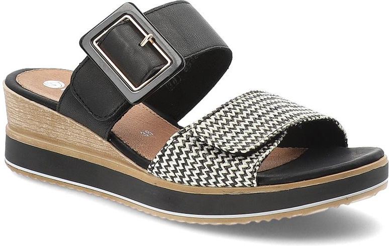 Czarne Klapki Remonte Stylowe Obuwie Damskie Na Koturnie Wisła
