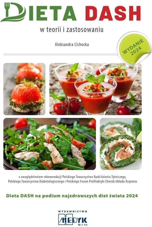 Nowe wydanie 2024! Warszawa 2024 rok, oprawa miękka B5 , pełen kolor, 204 strony. W książce opisano szczegółowo, na czym polega stosowanie tej diety, jakie produkty, w jakich ilościach oraz proporcjach należy w niej uwzględniać. Przedstawiono szereg badań naukowych, które wykazały jej korzystny wpływ na zdrowie, a zwłaszcza na wartości ciśnienia tętniczego krwi, jak również przydatność tej diety, między innymi, w obniżaniu stężenia cholesterolu, w profilaktyce i leczeniu cukrzycy typu 2 oraz chorób sercowo-naczyniowych. W książce zaproponowano 64 przepisy kulinarne zgodne z założeniami diety DASH. Dla każdego przepisu wyliczono zawartość kalorii i składników ważnych w diecie DASH, w tym wapnia, potasu, magnezu, błonnika i soli/sodu. Dieta DASH oparta jest na wynikach wieloletnich badań naukowych i rekomendowana przez ekspertów międzynarodowych towarzystw naukowych. SPIS TREŚCI: Recenzja prof. dr. hab. n. med. Leszka Czupryniaka Przedmowa do wydania III Dieta DASH na podium najzdrowszych diet świata 2023 Dieta DASH skuteczna w leczeniu i zapobieganiu nadciśnienia, obniżaniu stężenia cholesterolu, zmniejszaniu ryzyka cukrzycy typu 2 i chorób sercowo-naczyniowych Dlaczego ważne jest dążenie do uzyskania wartości optymalnych ciśnienia tętniczego krwi Badanie DASH Witamina D niezbędna do dobrego wchłaniania wapnia Dieta DASH a cukrzyca. Modyfikacja diety DASH dla osób z cukrzycą Dieta DASH obniża podwyższone stężenie "złego" cholesterolu LDL we krwi Dieta DASH zmniejsza ryzyko rozwoju chorób układu sercowo-naczyniowego. Analiza Funga i wsp. Dieta DASH wydłuża życie, zmniejsza ryzyko umieralności ogólnej oraz z powodu chorób sercowo-naczyniowych i nowotworówAnaliza Reed'iego i wsp. Co o diecie, w tym diecie DASH i nadciśnieniu, napisali eksperci w najnowszych rekomendacjach towarzystw naukowych Dieta DASH na co dzień. Jak stosować ją w praktyce Sposób opracowywania przepisów Najważniejsze informacje o diecie DASH dla pacjentów Przepisy na 1 porcję Wybrane piśmiennictwo
