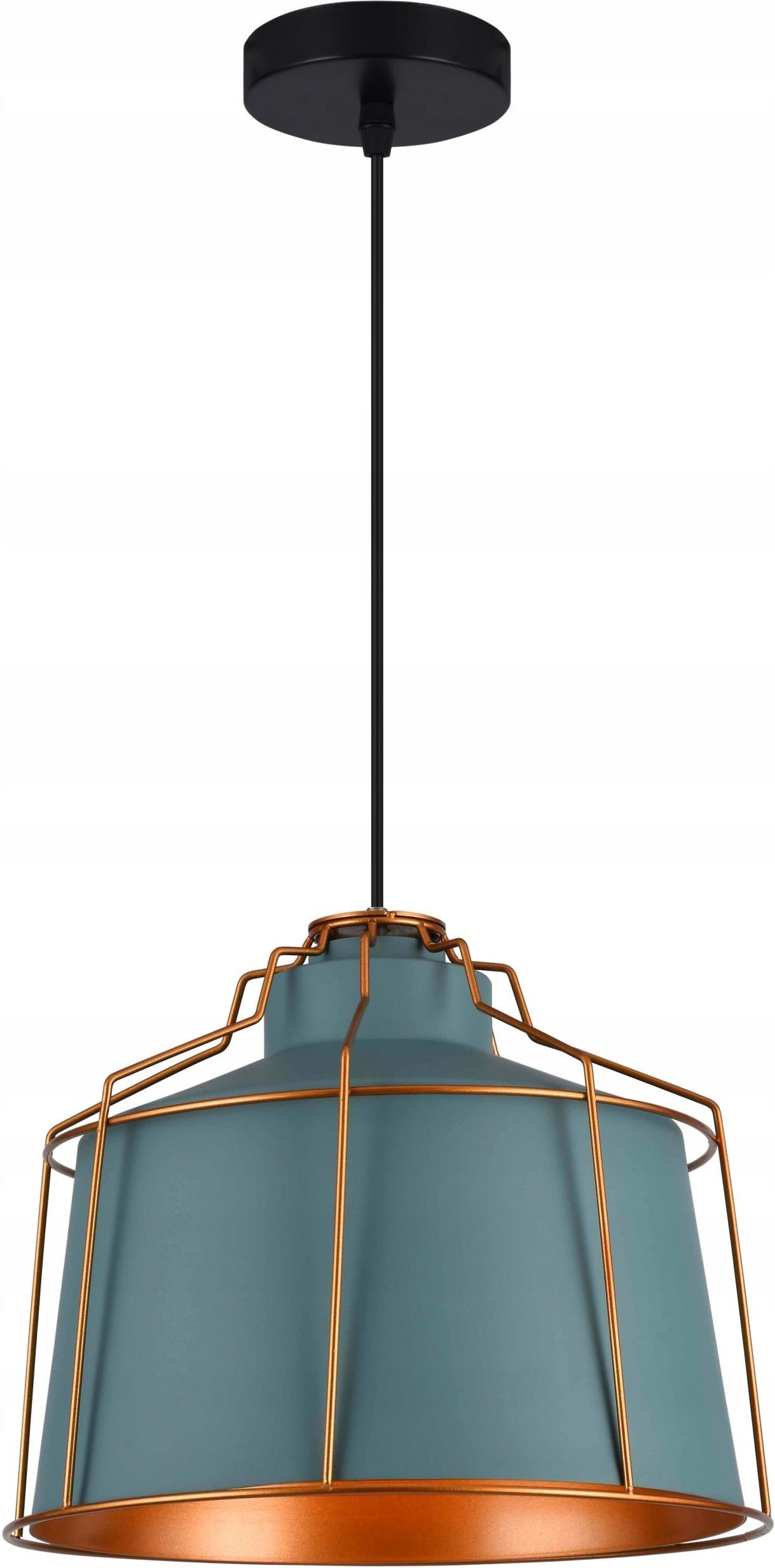 Lampa wisząca GOA Oprawa sufitowa GOA, 3574, AC220-240V, 50/60Hz, 1*E27, IP20, ŚR. 32 CM, pojedyncza, niebieska. INDEKS (ID): OS-GOA-25-DEC (147982) EAN: 5902801353567 Opis Lampa GOA to ciekawa i nowoczesna propozycja dla osób, które lubią klasyczny kształt, ale w bardziej nowoczesnym wydaniu. Odważne zestawienie kształtów, takich jak walec i proste linie to jej znak rozpoznawczy. Lampy wiszące tworzą niepowtarzalny nastrój w pomieszczeniu. Zwracają na siebie uwagę, dlatego szczególnie ważne jest, aby były odpowiednio dopasowane do aranżacji wnętrza. Lampa wisząca nie tylko pięknie oświetli wybrany przez Ciebie pokój, ale także będzie stanowiła wyjątkową dekorację. Efektowny wygląd tej lampy został zbudowany na zasadzie kontrastów. Klasyczny, lekko rozszerzający się ku dołowi, turkusowy klosz okryty jest ozdobnym złotym stelażem GOA to lampa, która sprawdzi się w domu, jak i poza nim: pokoje, kuchnia, korytarz, biuro a nawet restauracja. Łatwo zestawiać ją z różnym stylami urządzania wnętrz. Jest świetnym uzupełnieniem do stylu nowoczesnego, klasycznego, eklektycznego, minimalistycznego, a nawet vintage. Charakterystyka Ciekawa, nowoczesna stylistyka Efektowny, złoty stelaż okrywający klosz Łatwa do wkomponowania w wiele styli urządzania wnętrz Złote wykończenie wnętrza klosza ociepla światło padające z lampy Średniej wielkości lampa na jedno źródło światła E27– średnica klosza wynosi 32 cm. Cechy Miejsce montażu: sufit Kolor: niebieski Rodzaj trzonka: E27 Ilość źródeł światła: 1 Średnica klosza [mm]: 320 Materiał: metal Moc źródła światła lub urządzenia [W]: max.40 W Waga [g]: 1200 Klasa energetyczna: A-G Napięcie zasilania [V]: 220-240 Częstotliwość [Hz]: 50-60 Stopień ochrony IP: 20 Klasa ochronności przed porażeniem elektrycznym: I Certyfikat CE: tak Certyfikat EAC: tak