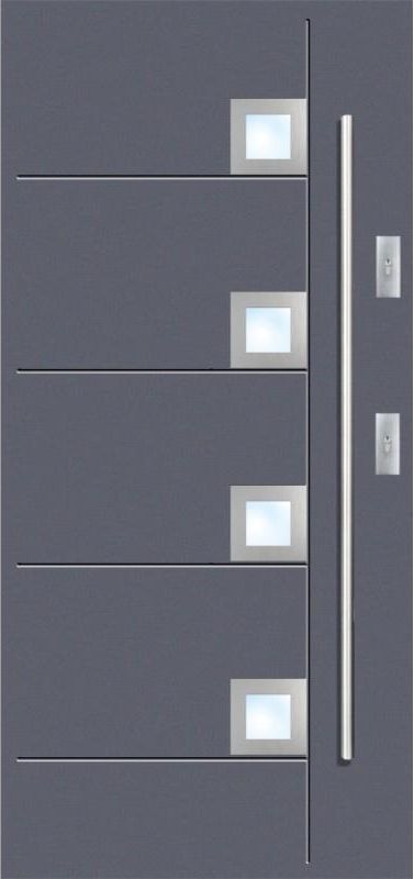 Drzwi wejściowe z aplikacją INOX oraz przeszkleniem to klasyczne i bardzo eleganckie rozwiązanie dla domów jednorodzinnych. W skrzydło drzwiowe wkomponowana jest pakiet szybowy, zbudowany z trzech szyb – dwóch zewnętrznych bezpiecznych i jednej środkowej. Na środkowej szybie umieszczona jest dekoracja przeszklenia. Na skrzydło drzwiowe jest także naklejona ramka INOX lub czarna, która podwyższa walory estetyczne skrzydła drzwiowego.