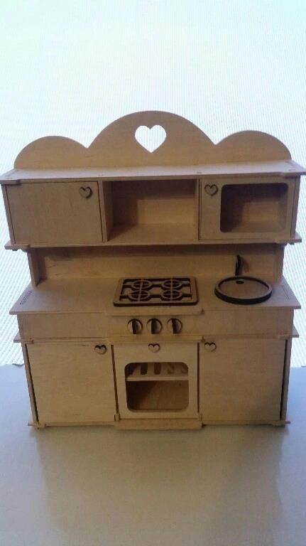 Mebelki dla lalki Barbie wykonane z eko sklejki gr 4mm z otwierany szafkami kolor naturalny drewna możliwość malowania ekologicznymi farbami wodnymi wys 30cm szer 27cm głębokość 6cm Produkt polski producent
