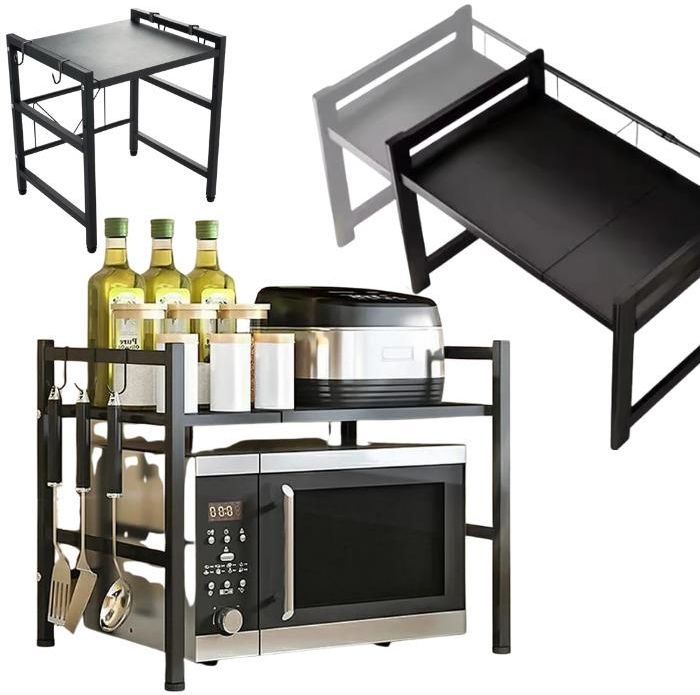 Stojak na mikrofalówkę, rozsuwana półka - regulacja teleskopowa, organizer loft. Montaż półki nad mikrofalówką pozwala zaoszczędzić cenną przestrzeń na blacie, organizując przedmioty w pionie. Możesz na niej przechowywać nie tylko przyprawy, talerze, kubki czy czajnik lecz cokolwiek, co wymaga uporządkowania. Dzięki regulowanej szerokości (teleskopowa konstrukcja) półka łatwo dostosowuje się do Twoich indywidualnych potrzeb, co sprawia, że nawet w niewielkiej kuchni zyskasz dodatkowe miejsce. Dbamy o Twoje bezpieczeństwo, dlatego półka została zaprojektowana tak, aby była stabilna nawet przy większym obciążeniu. Nóżki półki wyposażone są w specjalne elementy zapobiegające poślizgowi, co sprawia, że cała konstrukcja pozostaje solidna i nieruchoma. Dodatkowo, poprzeczka stabilizująca zwiększa bezpieczeństwo podczas użytkowania, co daje pewność, że Twoje przedmioty będą zawsze na swoim miejscu, nawet podczas intensywnej pracy w kuchni. Półka to nie tylko rozwiązanie nad mikrofalówkę! Dzięki jej uniwersalnemu charakterowi, możesz ją wykorzystać do przechowywania różnych przedmiotów. Sześć haczyków pozwala wygodnie powiesić klucze, przybory kuchenne, ściereczki czy inne drobne akcesoria, które zawsze chcesz mieć pod ręką. Możliwości są nieograniczone – dzięki tej półce porządek w kuchni staje się prostszy i bardziej efektywny. Nie musisz być majsterkowiczem, aby cieszyć się funkcjonalnością naszej półki! Produkt jest wyjątkowo prosty w montażu – w kilka minut zamontujesz go nad swoją mikrofalówką lub innym urządzeniem, bez potrzeby skomplikowanych narzędzi czy dodatkowej pomocy. Teleskopowa regulacja szerokości pozwala na szybkie dostosowanie półki do Twoich potrzeb. Nasza półka to nie tylko funkcjonalność, ale również estetyka. Czarna, minimalistyczna konstrukcja pasuje do większości nowoczesnych kuchni, dodając im elegancji. Gładka powierzchnia zapewnia łatwość czyszczenia, a jej dyskretny wygląd sprawia, że doskonale wkomponuje się w każde wnętrze, nie dominując przestrzeni, ale subtelnie podkreślając jej organizację. Zalety: teleskopowa regulacja – dostosuj szerokość do swoich potrzeb, stabilność – wyprofilowane nóżki i poprzeczka zapewniają bezpieczeństwo, wielofunkcyjność – przechowuj przyprawy, talerze, kubki, a także zawieś przybory na haczykach. Łatwy montaż – zainstalujesz półkę w kilka minut bez specjalistycznych narzędzi. Elegancki wygląd – stylowy, czarny design, który pasuje do każdej kuchni. Wymiary: wysokość: 45 cm głębokość: 36 cm szerokość: 38-65 cm (regulacja teleskopowa) możliwość montażu półki na wysokości: 32 cm lub 41 cm kolor: czarny materiał: metal