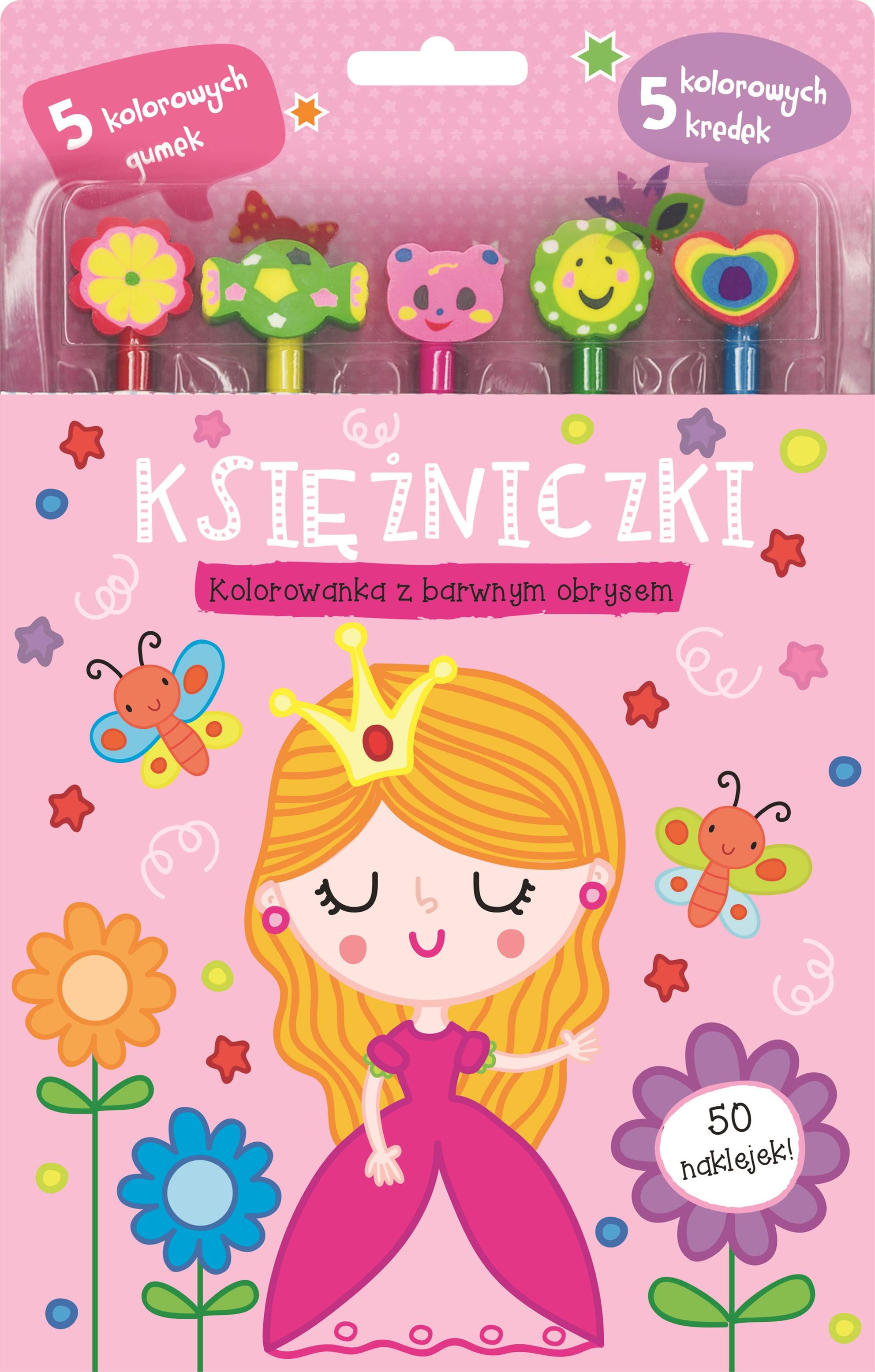 Księżniczki. Kolorowanka z barwnym obrysem Ten wyjątkowy zestaw został przygotowany dla małych artystów. Dzieci znajdą w nim kolorowanki z barwnym obrysem, 5 kolorowych kredek oraz 5 kolorowych gumek. Dodatkową atrakcją są naklejki, którymi można ozdobić swoje prace. Świetna zabawa gwarantowana! O …