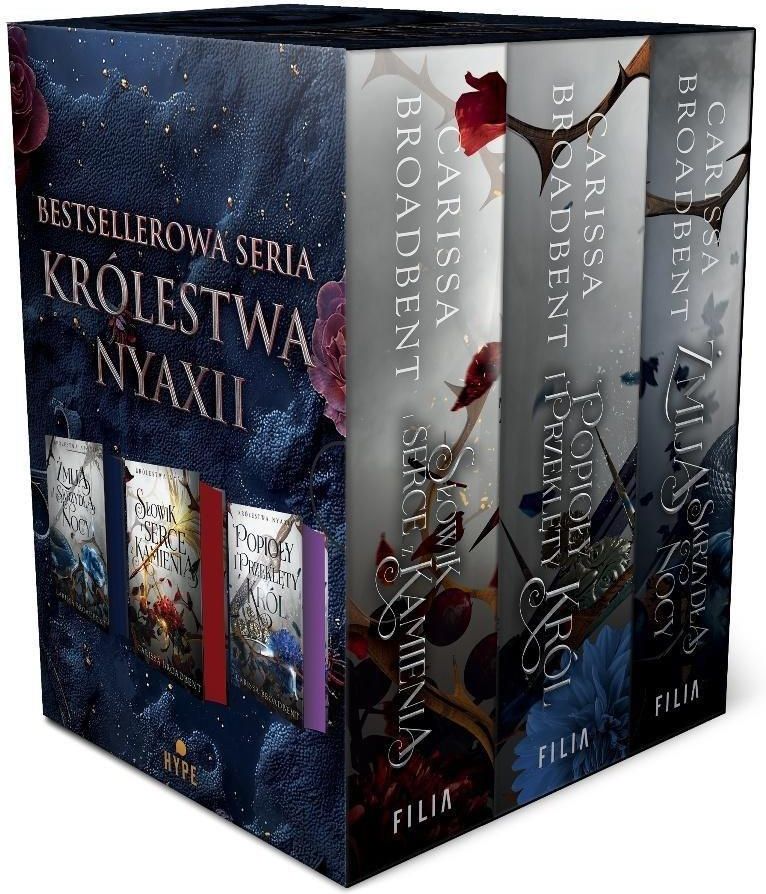 Przygotuj się na zanurzenie w mroczny, intrygujący świat, gdzie magia przeplata się z walką o przetrwanie, a granica między miłością a zdradą staje się niezwykle cienka. Pakiet "Żmija i skrzydła nocy" to zaproszenie do Królestw Nyaxii, gdzie potężne wampiry rządzą nocą, a ludzkie życie wisi na włosku. Carissa Broadbent stworzyła epicką sagę fantasy, która z każdą stroną wciąga głębiej w wir namiętności, politycznych intryg i niebezpiecznych sekretów. Jeśli szukasz historii, która poruszy Twoje emocje, zafascynuje misterną intrygą i pozwoli zgubić się wśród niezapomnianych bohaterów, ta seria jest stworzona dla Ciebie. Centralną postacią dwóch pierwszych tomów jest Oraya, adoptowana córka bezwzględnego króla wampirów Zrodzonych z Nocy. W świecie, w którym bycie człowiekiem oznacza bycie zwierzyną, Oraya od najmłodszych lat uczyła się walczyć o każdy dzień. Jej jedyną szansą na zdobycie pozycji, która pozwoli jej przetrwać, jest udział w legendarnym turnieju Kejari, organizowanym przez samą boginię śmierci. To wyzwanie, w którym stawka jest najwyższa – życie. Oraya musi zmierzyć się z najokrutniejszymi wojownikami z trzech potężnych domów wampirzych, a każde zadanie to śmiertelna pułapka. Aby przetrwać, jest zmuszona zawrzeć sojusz z Raihnem, tajemniczym rywalem, którego reputacja bezlitosnego zabójcy i wroga korony ojca Orayi poprzedza jego samego. To właśnie on staje się jej największą konkurencją, a zarazem źródłem skomplikowanych uczuć, które mogą okazać się dla niej śmiertelne. Czy w królestwie, gdzie nic nie jest groźniejsze od miłości, Oraya zdoła obronić swoje serce i życie? Czytelniczki i czytelnicy doceniają, jak autorka zręcznie buduje napięcie między bohaterami, rozwijając ich relację od nieufnej rywalizacji po głęboką, choć bolesną, więź. Intrygi w Królestwach Nyaxii: Walka o Władzę i Przeznaczenie Kiedy turniej Kejari dobiega końca, świat Orayi zostaje wywrócony do góry nogami. Po krwawych wydarzeniach, staje się więźniem we własnym królestwie, pogrążona w żałobie po stracie jedynej osoby, która była dla niej rodziną. Druga część serii, "Popioły i przeklęty król", to opowieść o zdradzie, utraconej tożsamości i rozpaczliwej próbie odzyskania kontroli. Oraya wie jedno: nie może ufać nikomu, zwłaszcza Raihnowi, który ją zdradził. Jednak w obliczu narastających politycznych intryg, gdy całe królestwo pogrążone jest w chaosie, Oraya musi rozważyć podjęcie ryzykownego sojuszu, aby odzyskać swój tron i zemścić się na tym, kto ją skrzywdził. Autorka z maestrią splata wątki mrocznej magii, krwawej intrygi i głęboko poruszającej historii miłosnej, która rozgrywa się w cieniu walki o władzę. Wielu odbiorców podkreśla, że Carissa Broadbent doskonale równoważy dynamiczną akcję z rozbudowanymi postaciami, tworząc świat pełen niuansów, gdzie nic nie jest czarno-białe. Zwracają uwagę na to, że książki charakteryzują się przystępnym stylem pisania, który sprawia, że strony same się przewracają, a tempo narracji nie zwalnia, trzymając w napięciu od początku do końca. Nowe Oblicze Mroku: Podróż do Podziemi Królestw Nyaxii Trzeci tom pakietu, "Słowik i serce z kamienia", przenosi nas w zupełnie nowe, choć równie fascynujące rejony Królestw Nyaxii. Poznajemy Mische, niegdyś śmiertelniczkę błogosławioną przez boga słońca, która została przemieniona w wampira i zmuszona do odbycia niebezpiecznej misji. Wraz z Asarem, tajemniczym księciem Zrodzonych z Cienia, musi przemierzyć zdradliwą ścieżkę do podziemi, aby stawić czoła próbom, bestiom i mściwym duchom z przeszłości. Ta podróż to nie tylko fizyczne wyzwanie, ale przede wszystkim wewnętrzna walka o tożsamość, wiarę i miłość, która może wywołać gniew bogów. Czytelnikom podoba się, jak ten tom pogłębia uniwersum, odkrywając skomplikowane relacje między bogami, wampirami i ludźmi, a także zagłębiając się w boską politykę i starożytne moce. To opowieść o wyborach, które mają wpływ na całe światy, o odkupieniu i o tym, jak ciemna miłość może sprzeciwić się samym bogom. Pakiet "Żmija i skrzydła nocy" to gratka dla fanów dark fantasy i romantasy, oferująca bogate uniwersum, pełne skomplikowanych postaci i zapierających dech w piersiach zwrotów akcji. Każda z tych książek, dostępna w twardej oprawie, to starannie wydana propozycja, która z pewnością zajmie honorowe miejsce na półce. Doświadcz tej niezwykłej sagi, w której: Niezłomna Oraya walczy o przetrwanie i swoje miejsce w okrutnym świecie wampirów. Sojusze i zdrady splatają się w misterną sieć politycznych intryg. Zakazana miłość rodzi się w najmniej spodziewanych okolicznościach, testując granice lojalności. Mroczna magia i starożytne moce kształtują losy bohaterów i całych królestw. Porywająca fabuła i głębokie portrety psychologiczne bohaterów gwarantują niezapomniane wrażenia. Daj się porwać tej niezwykłej opowieści o sile, poświęceniu i walce o prawdziwą miłość w świecie, który nie zna litości. Sięgnij po ten pakiet i przekonaj się sam, jak mroczne Królestwa Nyaxii potrafią oczarować!