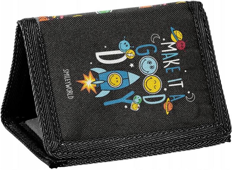 Portfel na rzep z kieszonką na monety młodzieżowy dla dzieci Smiley czarny Portfel Beuniq to praktyczny portfel młodzieżowy. Portfel posiada wiele funkcjonalnych przegród zapewniających dobrą organizację. Wewnątrz kieszonka na zamek na monety oraz przeźroczysta kieszonka na małe zdjęcie. Obszerna kieszeń przez całą długość rozłożonego na płasko portfela mieści papierowe banknoty, a dwie dodatkowe przegrody mogą przydać się do przechowywania różnych informacji. ✅ Wymiary rozłożonego portfela: 26×12 cm ✅ Wymiary złożonego portfela: 12 x 8,5 x 1 cm ✅ Waga: 75 gramów ✅ Materiał: poliester