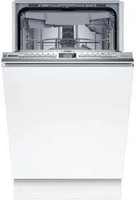 Automatyczne otwieranie drzwi:nie;Czas programu dla standardowego cyklu mycia:03:40;Długość kabla:175 cm;Długość węża dopływowego:165 cm;Długość węża odpływowego:205 cm;Dodatkowe informacje:system ochrony szkła, łączność Wi-Fi;Dostosowanie wnętrza do załadunku:ruchome kosze, ruchome elementy w koszach, uchwyty na kieliszki;Funkcje dodatkowe:system ochrony szkła, automatyka zmywania, zdalne sterowanie smartfonem;Funkcje dodatkowe:dodatkowe suszenie, strefa intensywna, czyszczenie zmywarki Machine Care, automatyka zmywania, zdalne sterowanie;Gwarancja:24 miesiące;Informacja o pracy zmywarki:sygnał dźwiękowy, sygnał świetlny;Zgodność z aplikacją:Bosch/Siemens Home Connect;Kompatybilność aplikacji:Android od wersji 6.0, iOS od wersji 14.0;Interoperacyjność 3 - tekst:Niektóre funkcjonalności wymagają zainstalowania aplikacji, którą pobrać można z Google Play oraz Apple Store.;Interoperacyjność 4 - link Google Play:https://play.google.com/store/apps/details?id=com.bshg.homeconnect.android.release&hl=pl&gl=US;Interoperacyjność 5 - link Apple Store:https://apps.apple.com/pl/app/home-connect-app/id901397789?l=pl;Interoperacyjność 6 - obowiązkowe:Produkt może wymagać aktualizacji, Szczegóły dotyczące kompatybilności, interoperacyjności i aktualizacji:;Interoperacyjność 7 - link do strony producenta:https://www.bosch-home.pl/lista-produktow/zmywanie/zmywarki-do-zabudowy/zmywarki-do-zabudowy-o-szerokosci-45-cm/SPV4HMX10E;Klasa energetyczna:E;Klasa zmywania:A;Dolny kosz:składane kolce;Górny kosz:półki na filiżanki, regulacja wysokości kosza;Liczba kompletów:10 kpl.;Liczba programów:6;System mycia sztućców:szuflada na sztućce;Opóźnienie startu pracy:tak;Oświetlenie wewnętrzne:nie;Panel sterujący:zintegrowany (zakryty);Pojemność:10 kpl.;Połowa załadunku:nie;Poziom hałasu:44 dB;Klasa poziomu hałasu:B;Poziom hałasu:44 dB;Programy zmywania:automatyczny, cichy, ekonomiczny (eco), garnki, program "godzinny", ulubiony;Rodzaj etykiety:nowa;Rodzaj zmywarki:zmywarka do zabudowy;Seria:Bosch Serie 4;Seria:Bosch Serie 4;Silnik inverterowy:tak;Sterowanie:elektroniczne;Systemy suszenia:technologia suszenia;Temperatury zmywania:50, 65, 70, auto 45-65;Programy zmywania:50, 65, 70, auto 45-65;Wariantowanie - mycie sztućców:szuflada;Wskaźnik braku nabłyszczacza:tak;Wskaźnik braku soli:tak;Wykonanie dna zmywarki:stal nierdzewna;Głębokość:55 cm;Szerokość:44,8 cm;Wysokość:81,5 cm;Wyposażenie:instrukcja obsługi w języku polskim, kabel zasilający z wtyczką, szuflada na sztućce, wąż dopływowy, wąż odpływowy, zabezpieczenie blatu przed parą;Zabezpieczenie przed zalaniem:wąż dopływowy;Zastosowane technologie:system koszy Bosch/Siemens VarioFlex, optymalne zużycie wody Bosch ActiveWater, szuflada Bosch/Siemens Vario3, zdalne sterowanie Bosch/Siemens Home Connect;Zawiasy ślizgowe:nie;Zużycie energii - cykl:0,75 kWh;Zużycie energii w trybie czuwania:0,5 W;Zużycie prądu (100 cykli):76 kWh;Zużycie wody - cykl:9,5 litra