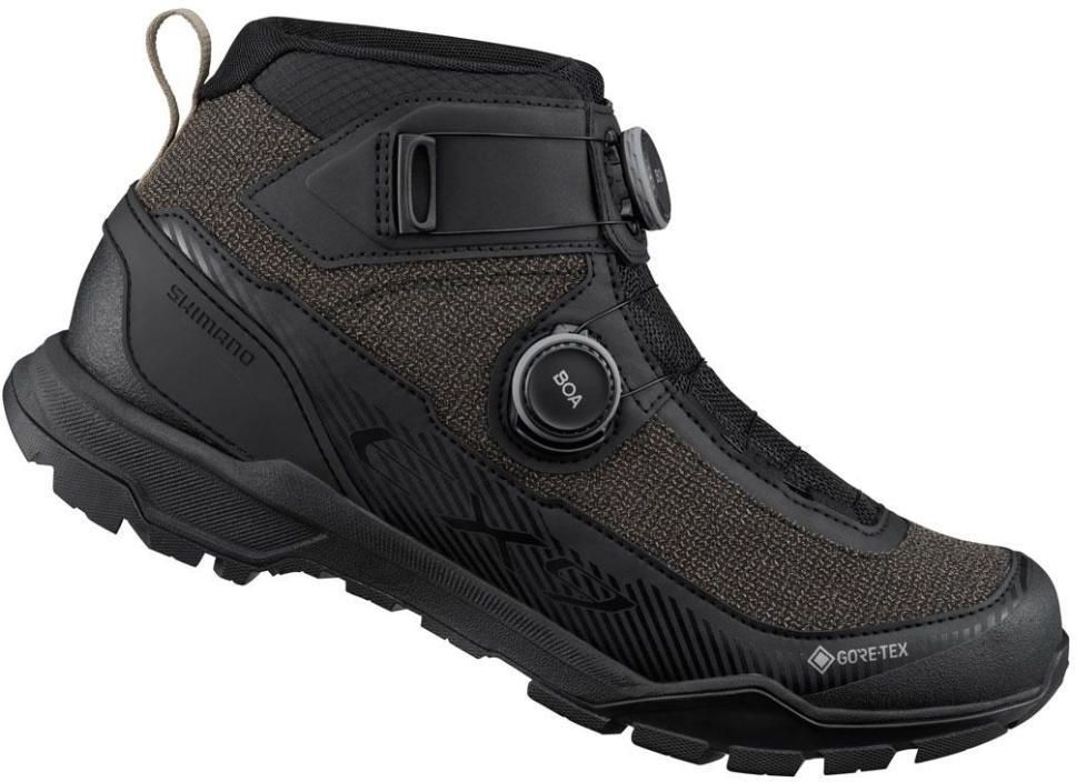 Wytrzymałe buty turystyczne dla pasjonatów kolarstwa i fanów ekstremalnych przygód w terenie. Podwyższona konstrukcja z systemem dopasowania BOA® z dwoma pokrętłami L6 zapewnia mikroregulację umożliwiającą płynne pedałowanie i stabilne chodzenie. Oddychająca wierzchnia część z siateczki i wydajna wyściółka GORE-TEX zapobiega przemoczeniu stóp i zapewnia wygodę. Podeszwa zewnętrzna z kauczuku ULTREAD EX o wysokiej przyczepności i wzór zoptymalizowany z myślą o wymagających przygodach zarówno podczas jazdy, jak i chodzenia. Plastikowa osłona systemu dopasowania BOA® z pokrętłem L6 zapobiega przypadkowemu rozluźnieniu zapięcia po kolizji z kamieniami, pniakami i innymi zagrożeniami na szlaku. Podeszwa środkowa EX z rozmieszczoną warstwowo pianką EVA pochłania udary w części pięty, poprawiając płynność i komfort chodzenia. Bardziej ekologiczny siatkowy wierzch i podeszwa środkowa wykonane w 18% z materiałów pochodzących z recyklingu (według masy). Większa powierzchnia styku w przedniej części stopy poprawia przyczepność i ogranicza uderzanie blokami, co przekłada się na wyższy komfort chodzenia. Położenie bloków SPD w części śródstopia poprawia komfort podczas spokojnego pedałowania z umiarkowaną kadencją. Sztywność: SYSTEM DOPASOWANIA BOA Z DWOMA POKRĘTŁAMI Podwyższona cholewka z systemem dopasowania BOA z dwoma pokrętłami L6 zapewnia mikroregulację umożliwiającą płynne pedałowanie i stabilne chodzenie. NIEPRZEMAKALNY WIERZCH GORE-TEX Oddychająca wierzchnia część z siateczki i wydajna wyściółka z materiału Gore-TEX zapobiega przemoczeniu stóp i zapewnia wygodę. ULTREAD EX Podeszwa z kauczuku ULTREAD EX o wysokiej przyczepności i wzór zoptymalizowany z myślą o wymagających przygodach zarówno podczas jazdy, jak i chodzenia. OPCJONALNA OSŁONA BLOKÓW Trwała gumowa osłona bloków zwiększa przyczepność podczas chodzenia i pedałowania z wypiętymi butami. OSŁONA POKRĘTŁA SYSTEMU DOPASOWANIA BOA Osłona pokrętła L6 systemu BOA z tworzywa zapobiega przypadkowemu poluzowaniu po uderzeniu w kamienie lub inne przeszkody na trasie. AMORTYZATOR PIĘTY Wewnętrzna część podeszwy EX z rozmieszczoną warstwowo pianką EVA pochłania uderzenia poprawiając komfort chodzenia. WYKONANE Z MATERIAŁÓW POCHODZĄCYCH Z RECYCLINGU Bardziej ekologiczna konstrukcja wierzchu i podeszwy wykonana w 18% z materiałów pochodzących z recyclingu (według masy). WIĘKSZA PRZYCZEPNOŚĆ W PRZEDNIEJ CZĘŚCI STOPY Większa powierzchnia styku w przedniej części stopy poprawia przyczepność i ogranicza uderzanie blokami, co przekłada się na wyższy komfort chodzenia. ZAKRES REGULACJI BLOKU W CZĘŚCI ŚRÓDSTOPIA Położenie bloków SPD w części śródstopia poprawia komfort podczas spokojnego pedałowania z umiarkowaną kadencją.