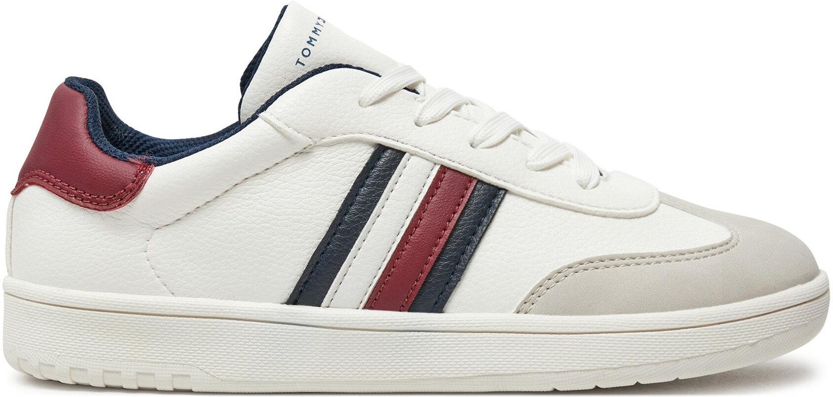 Wyjątkowe chłopięce sneakersy od Tommy Hilfiger to idealne połączenie wygody i klasycznego stylu. Dzięki imitacji skóry, buty prezentują się bardzo elegancko, a płaska biała podeszwa zapewnia stabilność i komfort noszenia. Sznurowanie gwarantuje idealne dopasowanie, a okrągły nosek dodaje uroku. Wnętrze butów z miękkiego materiału zapewnia wygodę przez cały dzień. Dzięki wysokiej jakości wykonaniu, będą doskonałym uzupełnieniem garderoby każdego modnego chłopca.