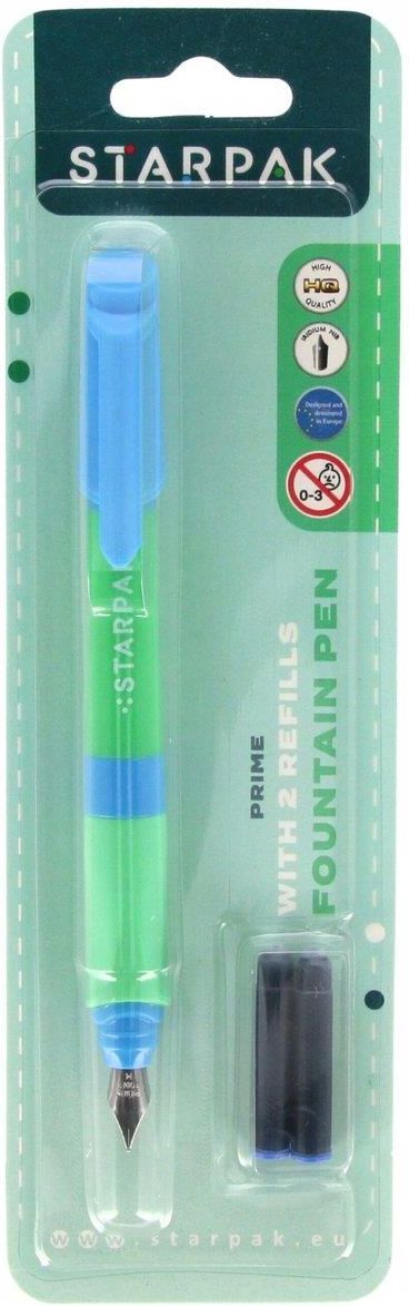 Pióro wieczne STARPAK Prime Pastel 3 o kształcie dostosowanym do dłoni dziecka, z wytrzymałą stalówką, wykonaną z wysokiej jakości materiału. Specjalnie wyprofilowana, antypoślizgowa strefa uchwytu zapewnia komfort i pomaga w nauce pisania Twojego dziecka. Zapoznaj się również z innymi produktami dedykowanymi biurze i szkole! W piórze znajduje się miejsce na zapasowy wkład, dzięki czemu Twojemu dziecku nigdy nie zabraknie atramentu w trakcie pisania. W zestawie dwa naboje wymienne. Pióro w kolorze zielono-niebieskim. Zestaw pakowany na blistrze. Produkt nieodpowiedni dla dzieci poniżej 3 lat. Wymiary produktu (pióro) 16 cm. Wymiary opakowania (wys. szer.) [cm] 23x7 Waga opakowania {kg.} 0,03 kg.