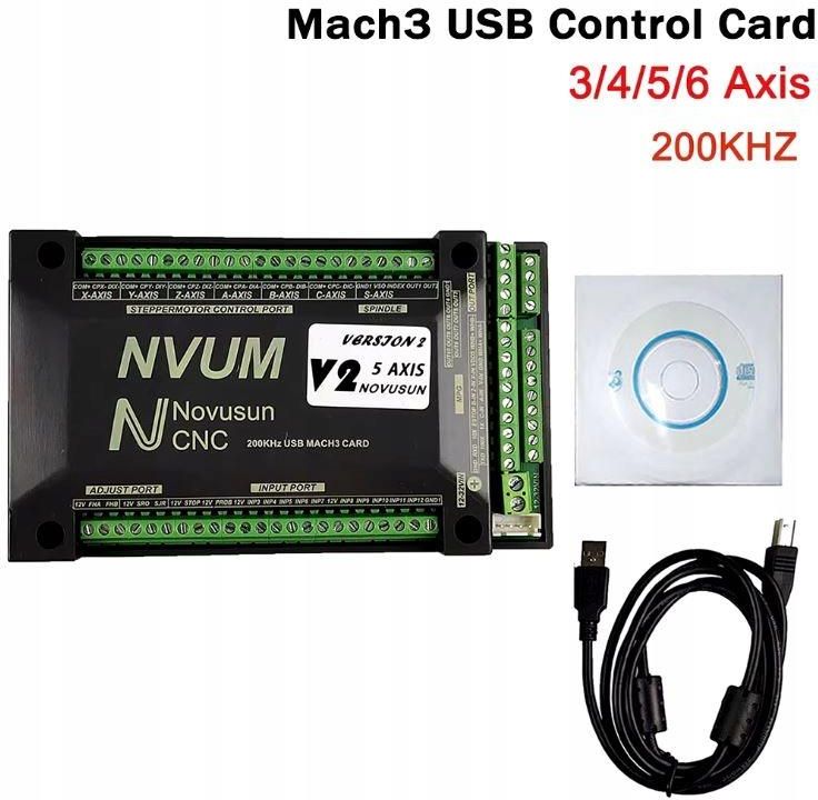 Bardzo szybka karta sterująca NOVUM V2 4osie pod MACH3 300kHZ USB NVUMv2.1 system CNC przyjmuje architekturę projektowania ARM, a ARM uzupełnia części, w tym komunikację, analizę kodu, algorytm bazowy i generowanie impulsów sterujących. Cykl sterowania każdej pozycji wynosi 2 milisekundy, a dokładność sterowania jest wysoka. Najwyższy impuls wyjściowy pojedynczej osi wynosi 300KHz, szerokość impulsu jest regulowana i obsługuje wspólne silniki krokowe i serwosilniki. NVUMv2.1.1 obsługuje sterowanie mach3 i wykorzystuje komunikacje USB z komputerem.  12 portów fotoelektryczny izolowany interfejs wejściowy dla zwykłych danych cyfrowych; 10 portów fotoelektryczny izolowany interfejs wyjściowy dla zwykłych danych cyfrowych; 1 port 0-10V wyjście analogowe prędkości wrzeciona interfejs (można zmienić na wyjście PWM); Może obsługiwać 3-6 osi krokowy systemy, 300KHz wyjście impulsowe dla każdej osi; Układ kontrolny ruchu ramienia; zasilanie 12V-32VDC, prąd powinien być wyższy niż 0,5a; w komplecie oprogramowanie i pluginy sterownika
