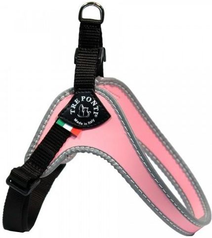 TRE PONTI - WŁOSKA MARKA Firma Tre Ponti mająca siedzibę w Treviso, niedaleko Wenecji, jest wiodącym producentem akcesoriów dla zwierząt domowych. Swój sukces na rynku zawdzięcza wysokiej jakości materiałom i nowoczesnym cyklom produkcyjnym odbywającym się w całości we Włoszech. Najważniejsze cechy szelek TRE PONTI Easy Fit: praktyczne, łatwe do założenia, dopasowania i zdjęcia (idealne dla psów nie lubiących wkładać szelek przez głowę); wykonane z trwałego, antyalergicznego materiału (obszyte odblaskową taśmą, świecącą w ciemności); nie przycinają i nie wyrywają sierści; bardzo lekkie, nie obcierają psa pod pachami; unikalny, elegancki design; wyprodukowane we Włoszech. Polecamy je pieskom i kotom w każdym wieku, a szczególnie młodym i tym, które mają już swoje lata. Obroża nawet ta najlepsza i najbardziej komfortowa nie jest tak bezpieczna i wygodna jak szelki. Nie uciskają gardła, nie powodują ewentualnych uszkodzeń krtani czy kręgosłupa. Dokładnie obejmują korpus zwierzęcia ułatwiając prowadzenie go na smyczy. W szelkach zapewniamy komfort i bezpieczeństwo podczas spaceru, który staje się przyjemnością zarówno dla czworonoga jak i właściciela. Szelki wykonane są z wytrzymałego, antyalergicznego materiału, który nie chłonie zapachu ani wilgoci. Szelki są bardzo lekkie, nie obcierają, nie przyczepiają się do sierści. Szelki obszyte są taśmą odblaskową, dzięki czemu Twój zwierzak będzie widoczny nawet w ciemności. Zapięcie na klamrę oraz uchwyt (wykonany ze stali nierdzewnej) do przypięcia do smyczy znajduje się na grzbiecie. Szelki wyprodukowane i opatentowane we Włoszech. Wykonane z materiałów najwyższej jakości, w sposób staranny i precyzyjny. Dostępne rozmiary: 1 - 32-45cm - Chihuahua, Mini York 1,5 - 33-47cm - York, Maltańczyk 2 - 40-56cm - Pinczer Mini, Maltańczyk, Szpic 2,5 - 43-58cm - Pinczer, Jack Russel Terrier 3 - 50-67cm - Shih Tzu, Pekińczyk, Mops 3,5 - 54-69cm - Buldog Francuski, West Highland White Terrier 4 - 61-77cm - Beagle, Buldog Angielski Dostępne kolory: czerwony; moro różowe; niebieski; czarne; moro; różowe.