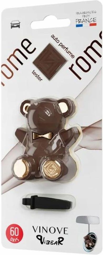 VINOVE VIBEAR ROME MISIO VINOVE VIBEAR To idealny produkt zarówno dla młodych jak i tych dojrzalszych Klientów, którzy inspirują się współczesnym designem, ale nie traktują go zbyt poważnie. Koncepcja została zainspirowana wspomnieniami z dzieciństwa i ulubionymi zabawkami - stąd postać misia, która wydała się być najlepszym wyborem. Pomysł na stworzenie VIBEAR zaczerpnięto również od współczesnego artysty Jeffa Koonsa związanego ze sztuką pop, którego dzieła często inspirowane są obrazami komercyjnymi i zabawkami. Nowoczesny design idealnie wpasowuje się we wnętrze samochodu Dzięki szczelinie między tyłem a przodem oraz perforacją z tyłu zapach jest rozprowadzany równomiernie szeroka gama kolorów i zapachów podwójny system montażu - do powieszenia i w kratkę nawiewu sprawdzona technologia polimer stosowany z powodzeniem od lat, który stopniowo uwalnia zapach nawet do 60 dni Rome ROME to powiew historii „wiecznego miasta” Rzymu. Przywodzi na myśl męstwo starożytnych Rzymian oraz wojowniczość gladiatorów. ROME to kwintesencja męskiego zapachu, połączenie siły i trwałości tkwiącej w cedrowym drewnie, oraz delikatności zaklętej w powiewie wanilii, przełamanej szczyptą cynamonu. Nuta głowy: śliwka, cynamon, kminek Nuta serca: szafran, drewno cedrowe, paczula Nuta bazowa: tytoń, drzewo sandałowe, wanilia, skóra