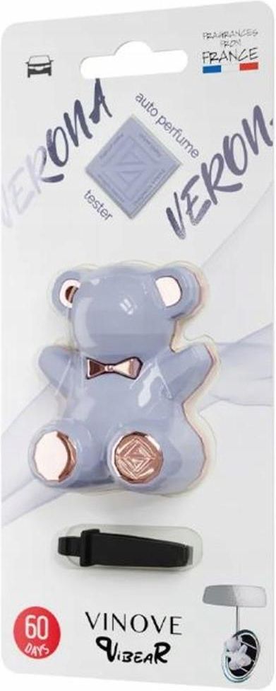VINOVE VIBEAR To idealny produkt zarówno dla młodych jak i tych dojrzalszych Klientów, którzy inspirują się współczesnym designem, ale nie traktują go zbyt poważnie. Koncepcja została zainspirowana wspomnieniami z dzieciństwa i ulubionymi zabawkami - stąd postać misia, która wydała się być najlepszym wyborem. Pomysł na stworzenie VIBEAR zaczerpnięto również od współczesnego artysty Jeffa Koonsa związanego ze sztuką pop, którego dzieła często inspirowane są obrazami komercyjnymi i zabawkami. Nowoczesny design idealnie wpasowuje się we wnętrze samochodu Dzięki szczelinie między tyłem a przodem oraz perforacją z tyłu zapach jest rozprowadzany równomiernie szeroka gama kolorów i zapachów podwójny system montażu - do powieszenia i w kratkę nawiewu sprawdzona technologia polimer stosowany z powodzeniem od lat, który stopniowo uwalnia zapach nawet do 60 dni VERONA Verona to misterna kompozycja, wyrafinowana, niemal poetycka. Na początku otula upajającym akordem irysa oraz słodyczą skórki jabłka, by chwilę później do głosu dopuścić ostrzejsze nuty drzewne, mchowe i korzenne. Głębi perfumom nadaje duet piżmowo-ambrowy a rozgrzewający aromat brązowego cukru uwypukla kwiatowo-owocowe nuty. Nuta głowy: irys, skórka jabłka Nuta serca: piżmo, mech, nuty korzenne Nuta bazowa: ambra, brązowy cukier VINOVE VIBEAR VERONA Bezpieczeństwo dla kokpitu i tapicerki. Perfumy samochodowe VINOVE ujęte są w całkowicie bezpiecznym dla wnętrza samochodu trwałym polimerze, stanowiącym wraz z obudową kondensator zapachu. Testy wykazały pełną odporność tych perfum na wysokie i niskie temperatury. Żaden z komponentów użytych w perfumach VINOVE nie wchodzi w szkodliwe reakcje z materiałami używanymi we wnętrzach aut. Kondensator zapachu VINOVE ma postać stałą, dzięki czemu nie wydostanie się z niego żadna substancja – wyłącznie wyjątkowy zapach. Zalety WŁOSKI DESIGN : Szlachetna forma perfum samochodowych VINOVE idealnie wpisuje się w stylistykę współczesnych aut. UNIKALNOŚĆ ZAPACHU : Francuski rodowód receptur perfum VINOVE zapewnia wyszukane połączenia nut zapachowych. Twój samochód zyska dodatkowy wymiar elegancji. TRWAŁOŚĆ ZAPACHU : Perfumy samochodowe VINOVE pachną aż do 60 dni. Dyskretny zapach uwalnia się powoli dzięki skoncentrowanym esencjom zapachowym i zaawansowanym technologicznie polimerom, użytym jako nośnik zapachu. VINOVE Sp. z o.o. jest polską firmą, która funkcjonuje od 2016 r. VINOVE to ekskluzywne perfumy samochodowe. Do produkcji perfum samochodowych VINOVE zastosowano technologię XXI wieku. Wykorzystano wiedzę, otwartość i doświadczenie zespołu naukowców i wspólnie z nimi skondensowano zapachy w nowatorskim polimerze. Ich kształt jest tak skonstruowany, by powietrze z wywietrzników samochodowych delikatnie opływało polimerowy labirynt, uwalniając zapach subtelnie i długotrwale – aż do 90 dni. Projektując nośnik zapachu wzięto pod uwagę przede wszystkim jego walory użytkowe: długotrwałość uwalniania zapachu, bezpieczeństwo dla tapicerki i kokpitu samochodu, a także ekskluzywny wygląd, współgrający ze stylistyką nowoczesnych aut. Do produkcji perfum VINOVE użyto materiałów najwyższej jakości.