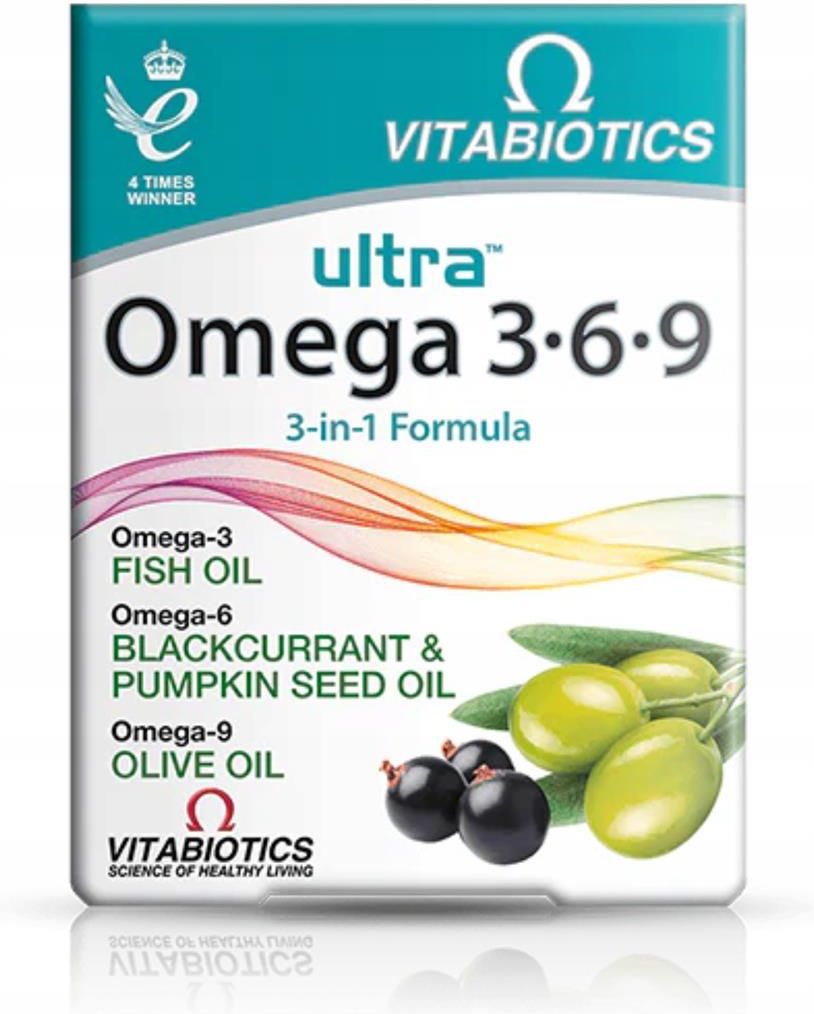 VITABIOTICS Ultra Kapsułki Omega 3,6,9 + WITAMINA E 60 kapsułek Kapsułki Ultra Omega-3 stanowią bogate źródło niezbędnych kwasów tłuszczowych. Każda kapsułka 3 w 1 zawiera specjalnie wyselekcjonowane oleje: Omega-3: Z oleju rybiego (wysoka czystość ze zrównoważonych połowów) Omega-6: Z oleju z nasion czarnej porzeczki i oleju z pestek dyni Omega-9: Z oliwy z oliwek (jakość zgodna z Farmakopeą Europejską) Dodatkowo witamina E pomaga chronić komórki przed stresem oksydacyjnym i chroni olej o wysokiej czystości. Kapsułki Ultra Omega 3-6-9 Ultra Fish Oils to gama olejów rybnych klasy premium, zaprojektowanych tak, aby spełniać najwyższe standardy jakości i czystości, atrakcyjnych dla tych, którzy szukają najlepszych dostępnych olejów morskich. Kapsułki Ultra Omega 3·6·9, wyjątkowa formuła 3 w 1, zapewniają korzyści Omega-3, Omega-6 i Omega-9 w jednej kapsułce. Te korzystne EFA (niezbędne kwasy tłuszczowe) pochodzą z olejów z czarnej porzeczki i pestek dyni, oleju rybiego Omega-3 i oliwy z oliwek. Każda kapsułka 3 w 1 Ultra Omega 3·6·9 zapewnia: Omega-3: z oleju rybiego o wysokiej czystości Omega-6: z oleju z pestek czarnej porzeczki i oleju z pestek dyni Omega-9: z oliwy z oliwek (jakość zgodna z Farmakopeą Europejską) Ultra Fish Oils to bogate źródło niezbędnych kwasów tłuszczowych DHA (kwas dokozaheksaenowy) i EPA (kwas eikozapentaenowy), które pomagają zachować zdrowie i dobre samopoczucie. EPA i DHA są klasyfikowane jako niezbędne kwasy tłuszczowe, ponieważ organizm nie jest w stanie ich wydajnie wytwarzać i muszą być dostarczane z pożywieniem. Nasza gwarancja czystości i jakości Produkty Vitabiotics są znane ze swojej jakości. Olej rybi przechodzi rygorystyczny proces oczyszczania, w tym wielokrotne etapy destylacji i dodatkowej filtracji, aby zapewnić olej o najwyższej czystości. Każda partia jest rygorystycznie testowana, certyfikowana i w pełni zgodna z surowymi przepisami WE i WHO dotyczącymi zanieczyszczeń środowiska. Oznacza to, że możesz być pewien najczystszych, najwyższych standardów jakości, wolnych od zanieczyszczeń, takich jak rtęć, dioksyny i PCB. Zrównoważone rybołówstwo Olej rybi Omega-3 stosowany w Ultra Omega 3·6·9 składa się z wysokiej jakości trójglicerydów, pochodzących z małych tłustych ryb, w tym sardynek i sardeli. Połów nigdy nie odbywa się w szczytowych sezonach tarła, a zatwierdzone metody połowu zapewniają minimalny rozmiar ryby, aby mniejsze, młodsze ryby mogły uciec. JEDNA LUB DWIE KAPSUŁKI DZIENNIE PODCZAS GŁÓWNEGO POSIŁKU Połknąć z wodą lub zimnym napojem. Nie żuć. Nie przekraczać zalecanej dawki. Można kontynuować tak długo, jak to konieczne. Przechowywać w temperaturze poniżej 25°C, w suchym miejscu, w miejscu niedostępnym i niewidocznym dla dzieci. Chronić przed światłem słonecznym i bezpośrednim ciepłem. Bez konserwantów i sztucznych barwników Bez cukru, drożdży i skrobi Bezglutenowy Ultra Range nie jest testowany na zwierzętach SUPLEMENT DIETY Suplementy diety nie mogą zastępować zróżnicowanej i zbilansowanej diety oraz zdrowego stylu życia. Podobnie jak w przypadku innych suplementów diety, skonsultuj się z lekarzem lub farmaceutą przed użyciem, jeśli jesteś pod nadzorem lekarza, jesteś w ciąży, karmisz piersią, masz padaczkę, cierpisz na alergie pokarmowe lub jesteś uczulony na którykolwiek ze składników. Nieodpowiednie dla dzieci. Ten produkt zawiera kwasy Omega-3. Osoby przyjmujące leki przeciwzakrzepowe (rozrzedzające krew) powinny skonsultować się z lekarzem przed użyciem tego produktu. Porady dla alergików: Alergeny, patrz składniki pogrubione na spodzie kartonu. Wyprodukowano w miejscu, które może mieć kontakt z orzechami. INSTRUKCJE ZNAJDUJĄ SIĘ NA TYLNYM PANELU.PRZECHOWYWAĆ W TEMPERATURZE PONIŻEJ 25° C, W SUCHYM MIEJSCU, POZA WIDOCZNYM I NIEDOSTĘPNYM DLA DZIECI. CHRONIĆ PRZED ŚWIATŁEM SŁONECZNYM I BEZPOŚREDNIM CIEPŁEM. Składniki Omega-3 Fish Oil (z ryb ), otoczka kapsułki (żelatyna farmaceutyczna [halal bovine source], gliceryna), olej z pestek czarnej porzeczki, olej z pestek dyni, oliwa z oliwek, witamina E (octan DL-alfa-tokoferylu). Informacje dla alergików: Alergeny, patrz składniki pogrubione.