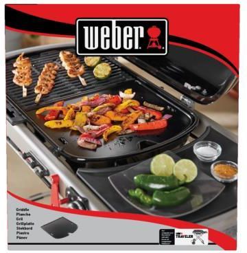 Płyta Weber Traveler pozwala na łatwe przyrządzanie najróżniejszych potraw: od naleśników i jaj na śniadanie, po fajitas i quesadillas na kolację – w miejscu, w którym aktualnie przebywasz. Żeliwo pokryte emalią porcelanową zapewnia równomierne rozprowadzanie ciepła i zapobiega przywieraniu potraw, a gdy nadchodzi czas wyjazdu, umożliwia łatwe czyszczenie wodą z mydłem. • Żeliwo pokryte emalią porcelanową utrzymuje ciepło i nie wymaga konserwacji • Powierzchnia zapobiega przywieraniu • Łatwe czyszczenie wodą z mydłem • Kompatybilność z grillami Weber Traveler. Specyfikacje Rozmiary po wyjęciu z opakowania 1.3cm WYS. x 32cm SZER. x 34.5cm GŁ. Rozmiary pojedynczego opakowania 2.9cm WYS. x 42cm SZER. x 45.5cm GŁ.